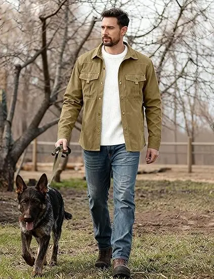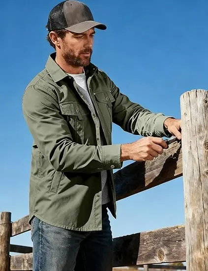 ·Material: Classic flannel-lined shirt jacket, thicker than a shirt but lightweight.