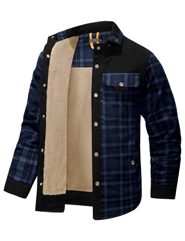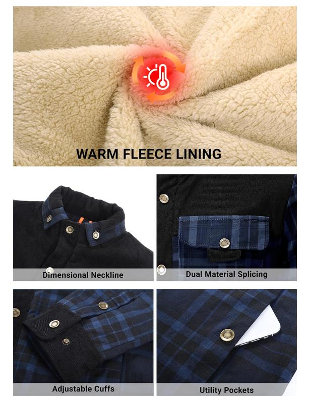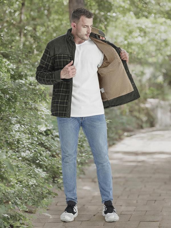 ·Great Value Flannel Jackets: Men's winter jacket combines warmth and functionality, classic lapel collar with snap buttons, one big flap chest pocket, two snap slant pockets, plush thicken faux fur fleece sherpa lining, regular fit, super warm, ideal for outdoor and casual wear