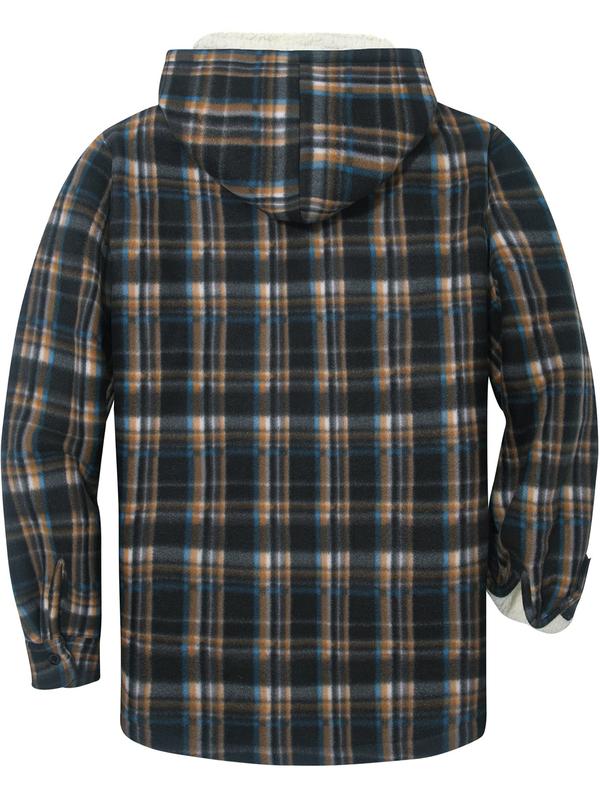5. Men's Flannel Shirt Jacket with Sherpa Fleece Lining, Plaid Pattern Hooded Coat, Full Zip Winter Outerwear, Casual Warm Clothing