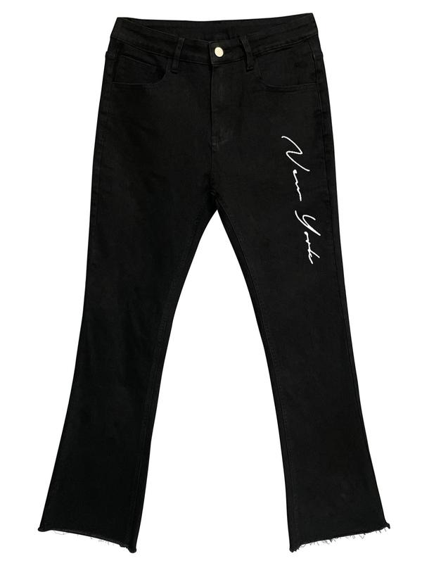 Men's Regular Fit Letter Print Flare Leg Jeans, Street Fashion Casual Comfy Denim Pants for Daily Wear, Mens Bottoms for All Seasons