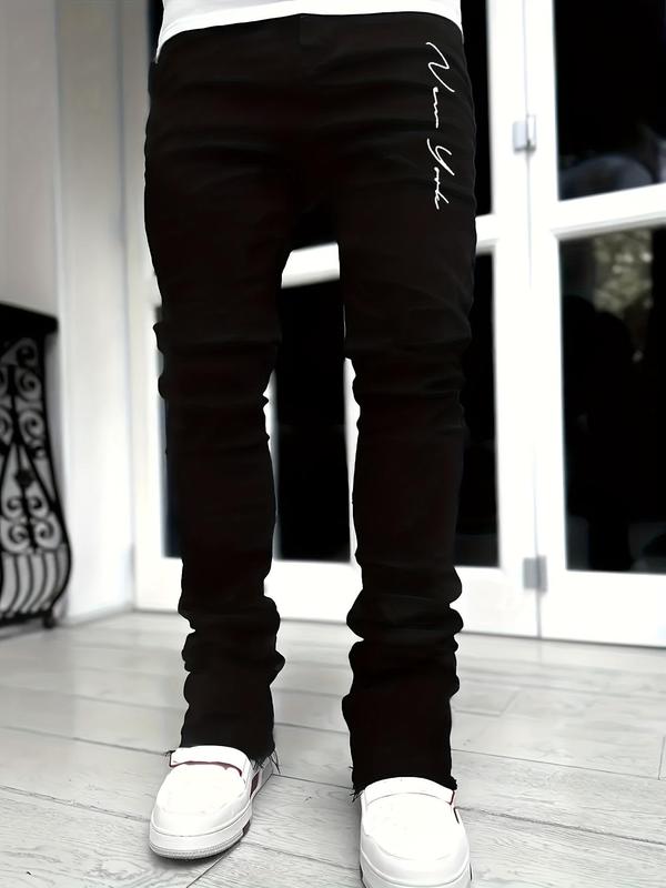 5. Men's Regular Fit Letter Print Flare Leg Jeans, Street Fashion Casual Comfy Denim Pants for Daily Wear, Mens Bottoms for All Seasons