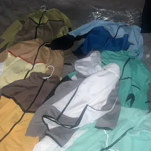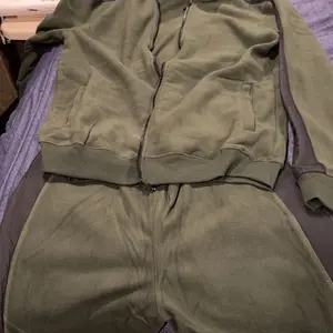 These are not as advertised in the video. Not bad for the price. But completely different from what is being shown in the product description. It is not one solid color. The hoodie is black and a different fabric. The sleeves and the side of the sweatpants have a solid black strip.