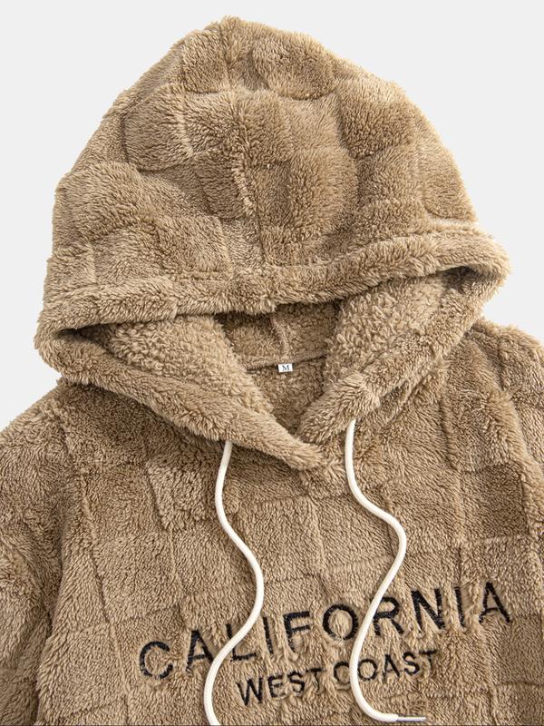 Men's Fleece Hooded Sweatshirt Jacket, Embroidered Design, Fall Winter Casual Daily Wear, Comfortable Warm Clothing