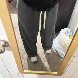 Honestly they’re my new favorite sweat pants now. They got a good wide leg baggy fit and the material is super soft. It is fleece lines that feels great. It is 52% cotton but you’re not gonna find anything better or similar for this price. Will buy again.