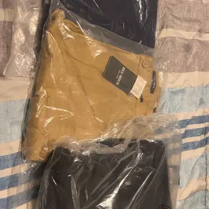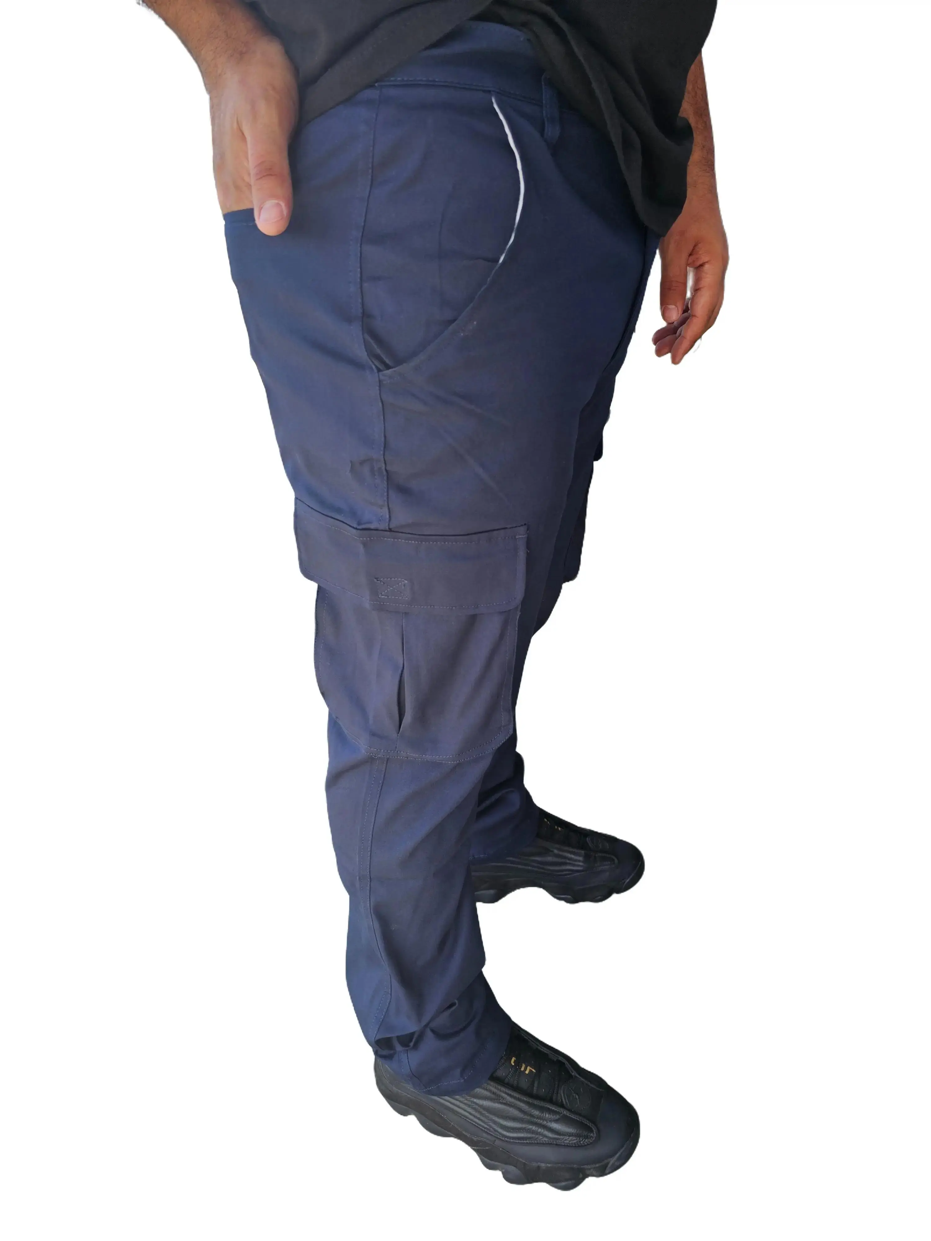 ⨠3-Pack Men's Flex-Stretch size dowen for a perfect fit. These cotton cargo pants come in 31-inch inseam lengths. Available in black, khaki, and navy blue. The plain design ensures comfort and durability. š