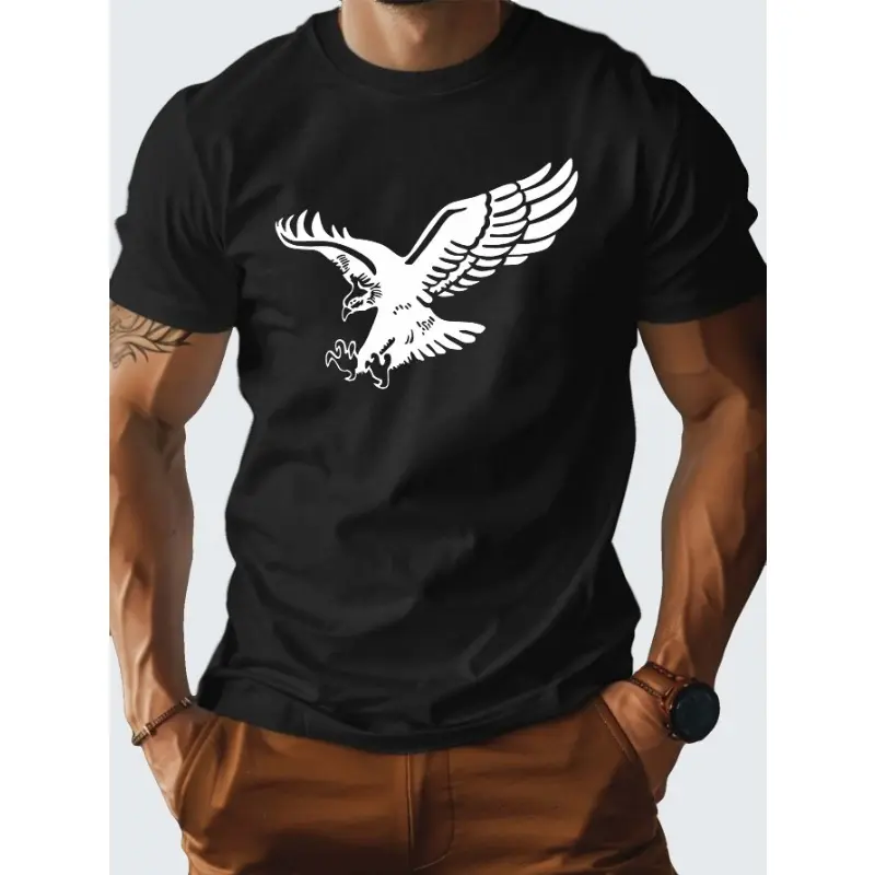 Men's Flying Eagle Printed T-Shirt 100% Cotton Crew Neck Casual T-Shirt Four Seasons Knitted Fabric Regular Version Comfortable Adult Clothing Breathable Clothing Crew Neck Shirt Cotton Fabric