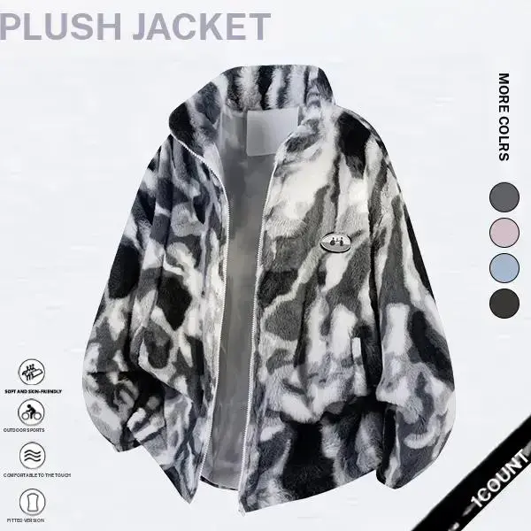 This thickened warm plush jacket is perfect for fall and winter. It features a zipper design and long sleeves, ensuring warmth and protection from the wind. The chest badge adds a unique touch to your casual outerwear. Ideal for everyday wear, it offers both style and functionality.