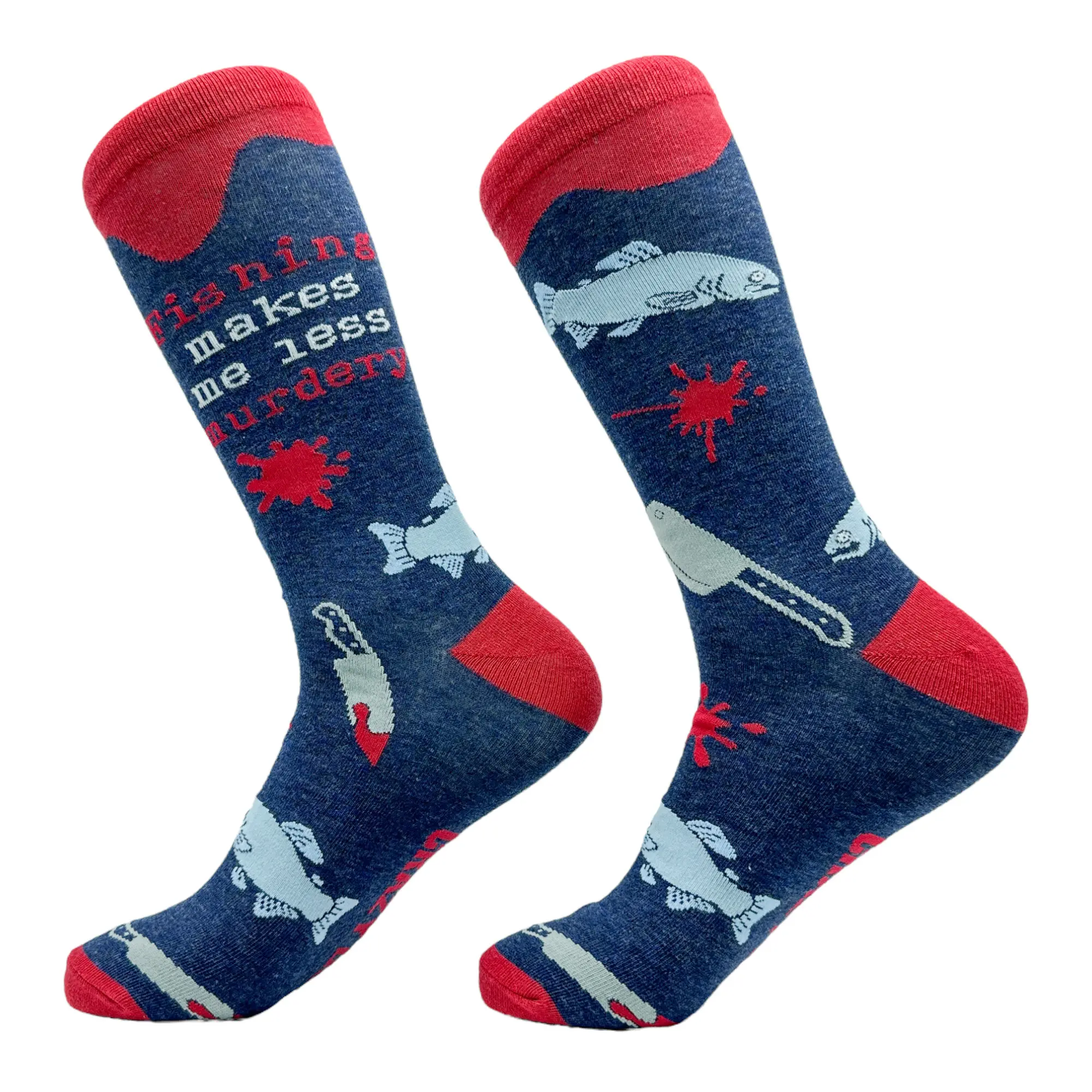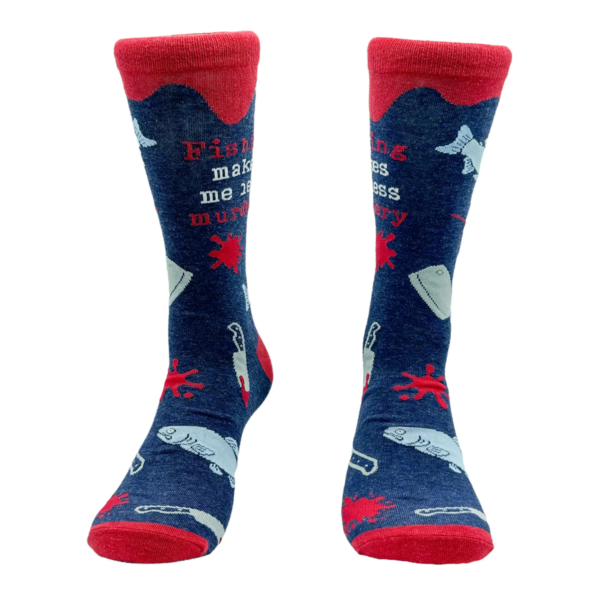 This is a Mens (9-11) Fishing Murdery Soft Comfortable Funny Graphic Socks sold by Crazy Dog T-Shirts.