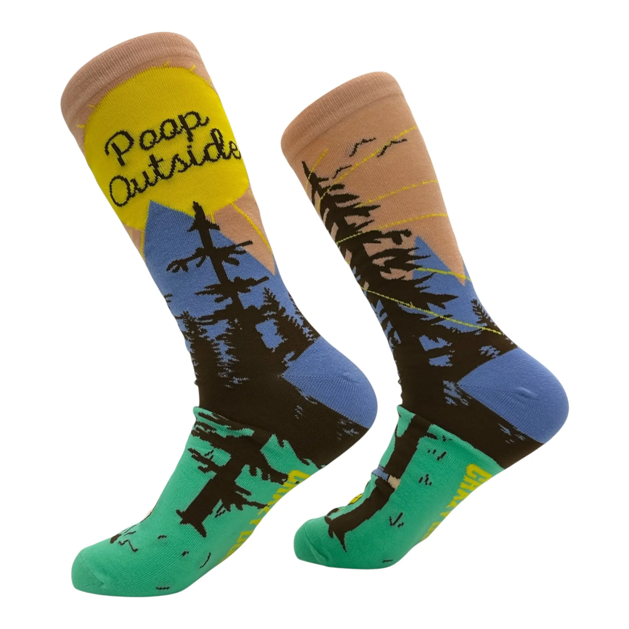 This is a Mens (9-11) Multi - Poop Outside Soft Comfortable Funny Graphic Socks sold by Crazy Dog T-Shirts.
