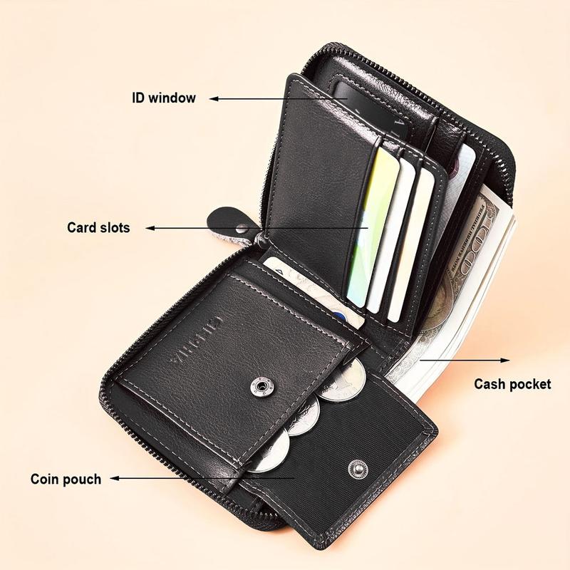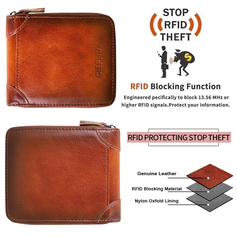 My husband was always losing his bank cards and money so I got him this wallet and it is awesome. The fact that you can place your cards and money and zip it up securely is exactly what he needed and he loved the color and that it's leather. Would purchase again.