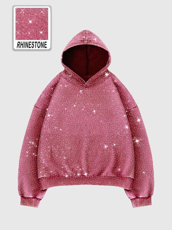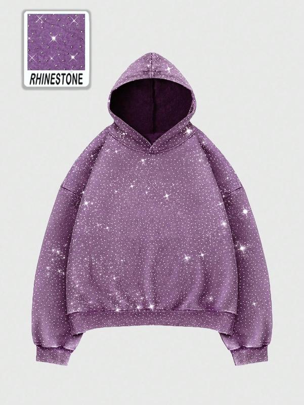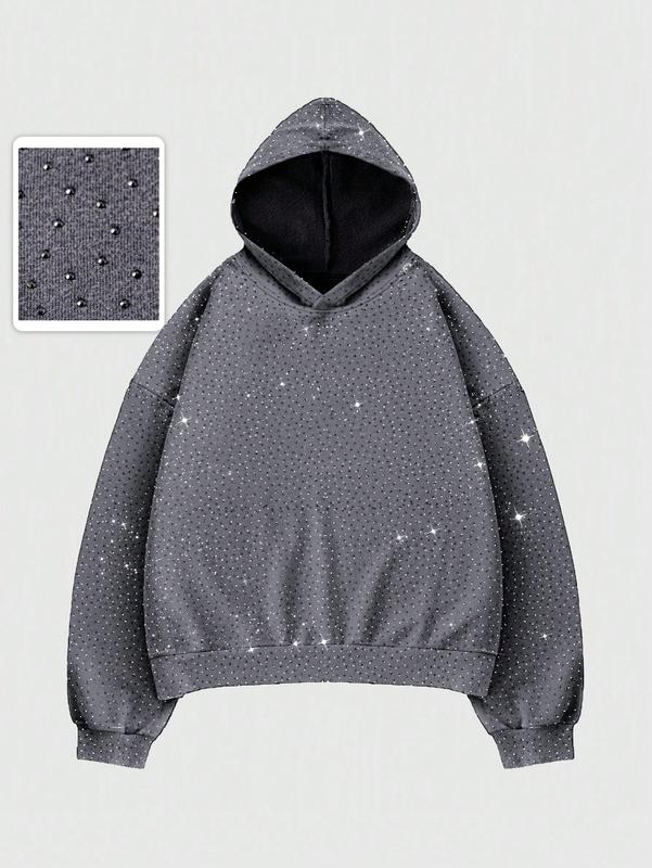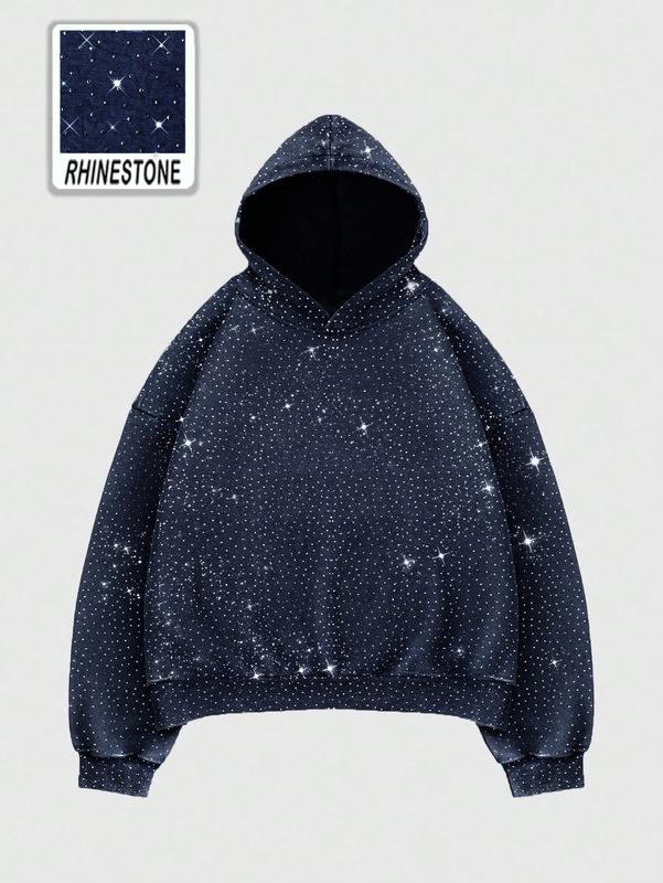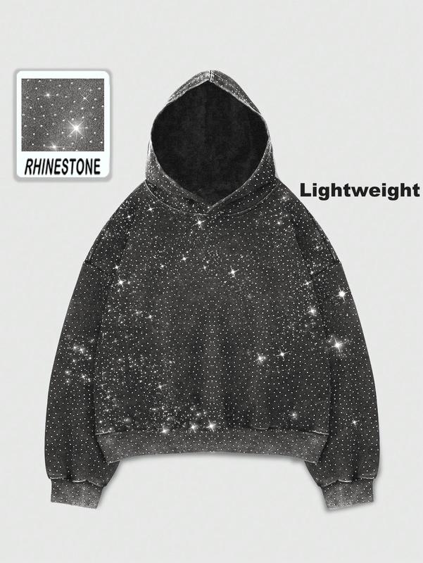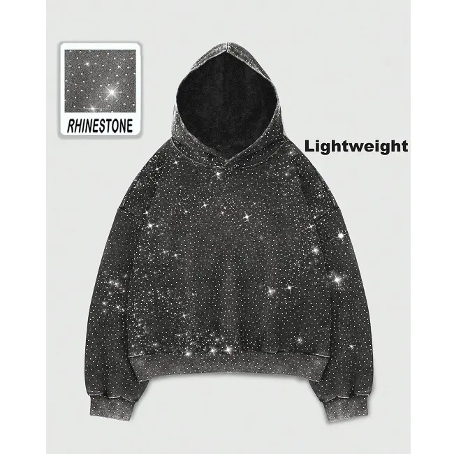 Feature: Mens hoodies, drop shoulder, long sleeve, rhinestone, bringing a fashionable edge to your everyday wear