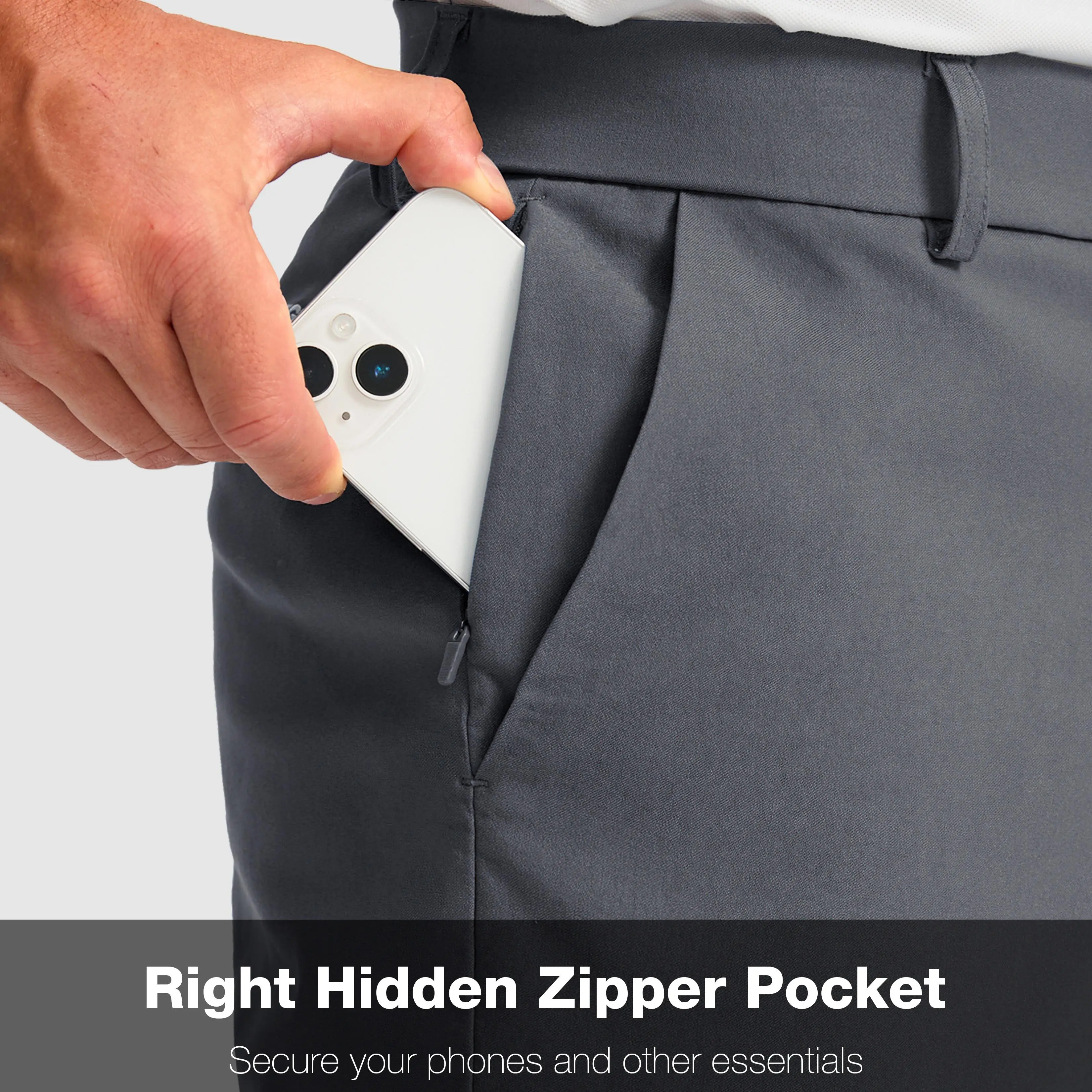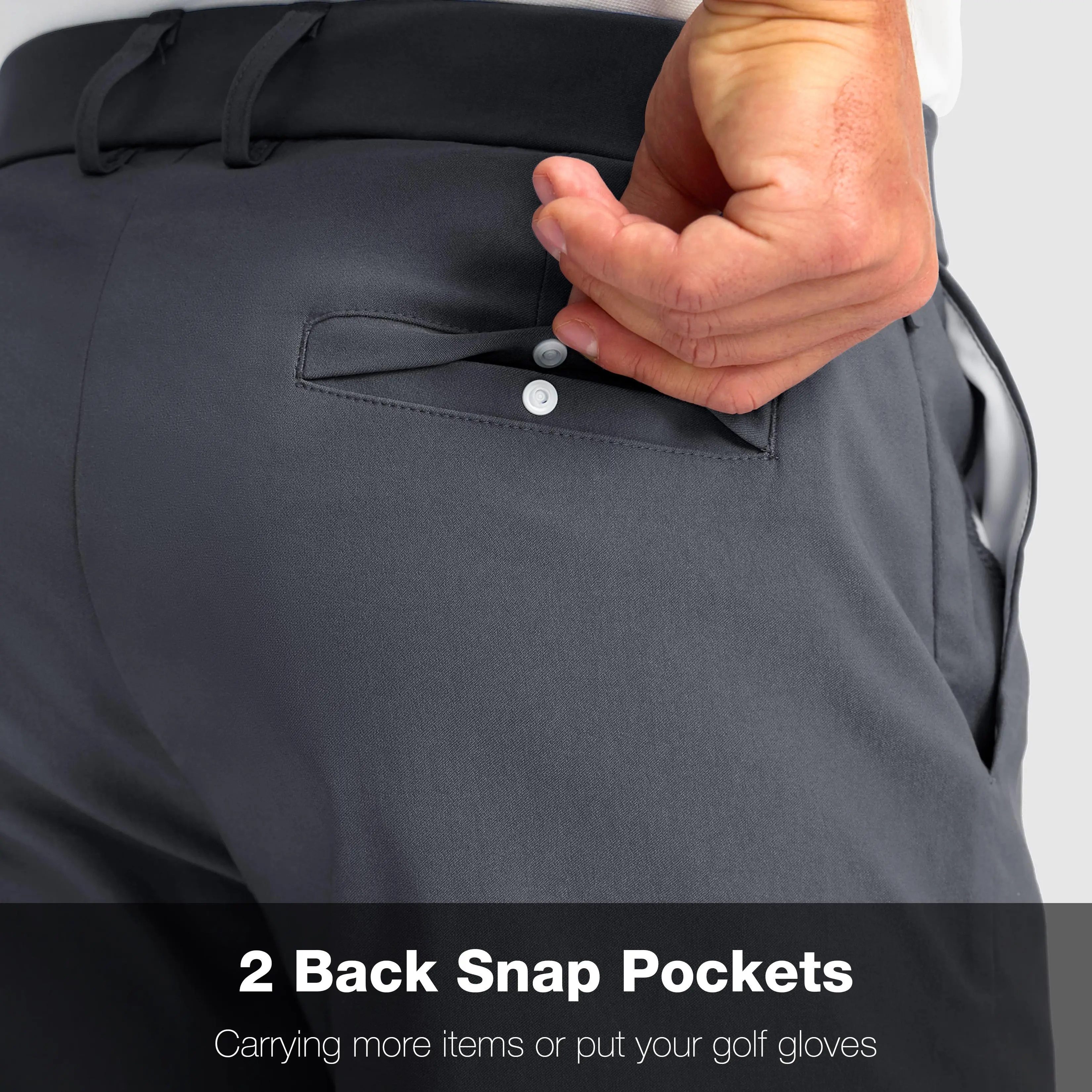 ·5 Pockets: 2 deep side pockets for your phone or golf balls and 2 back snap pockets carry more items like golf golves. 1 extra side zipper pocket securely store your cash or card.