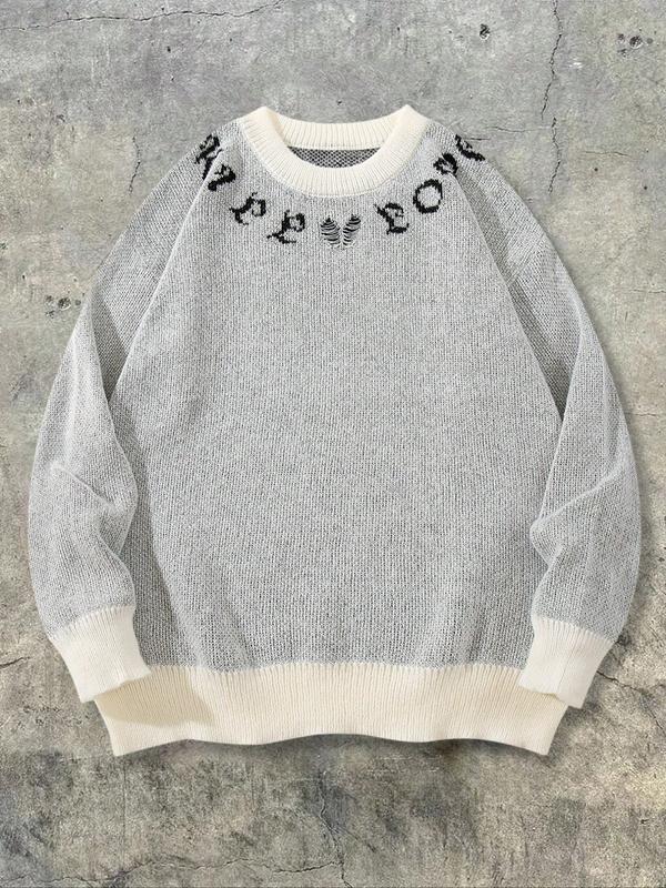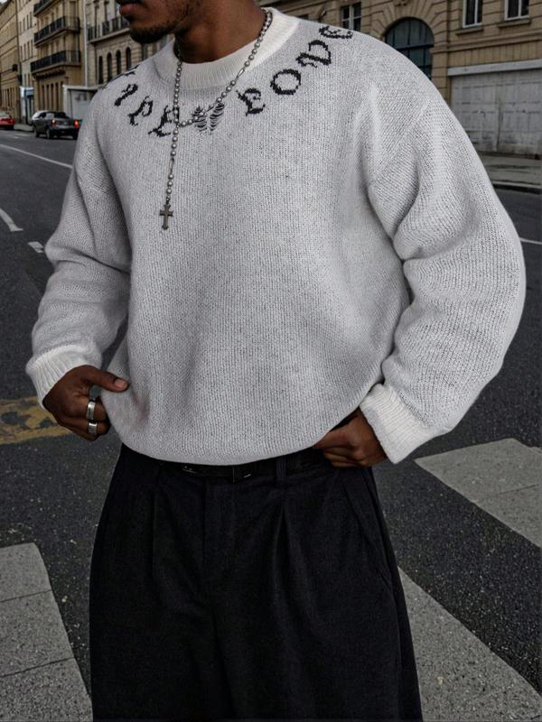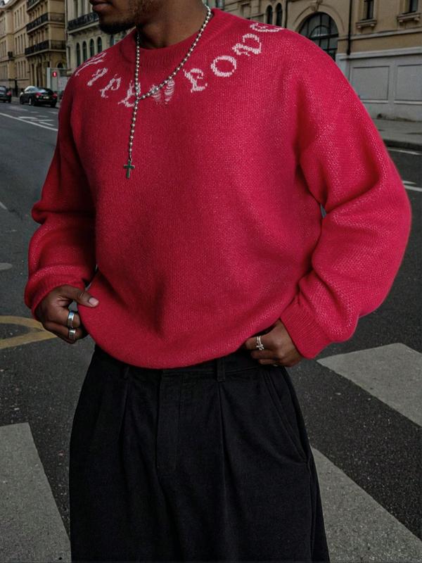 Men's Street Gothic Letter Print Sweater, Casual Loose Fit Round Neck Long Sleeve Pullover, Spring Autumn Winter Fashion #oversizedsweater #longsleeves #blackfridaysweater #cutesweaterinspo #gildansweatshirt #cozysweatshirt #amazonsweater #uglychristmassweaters #fleecesweatshirt #knitsweaters