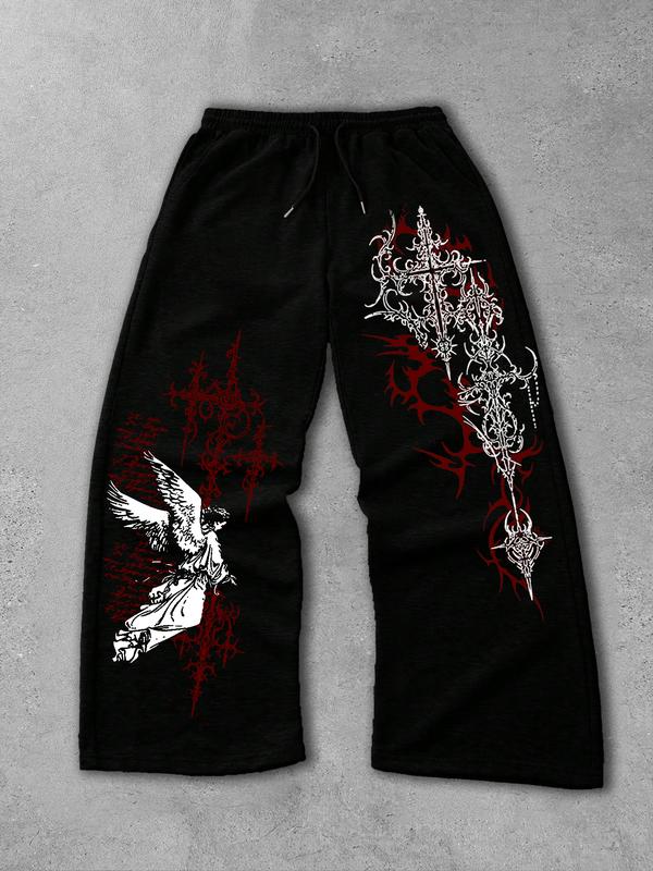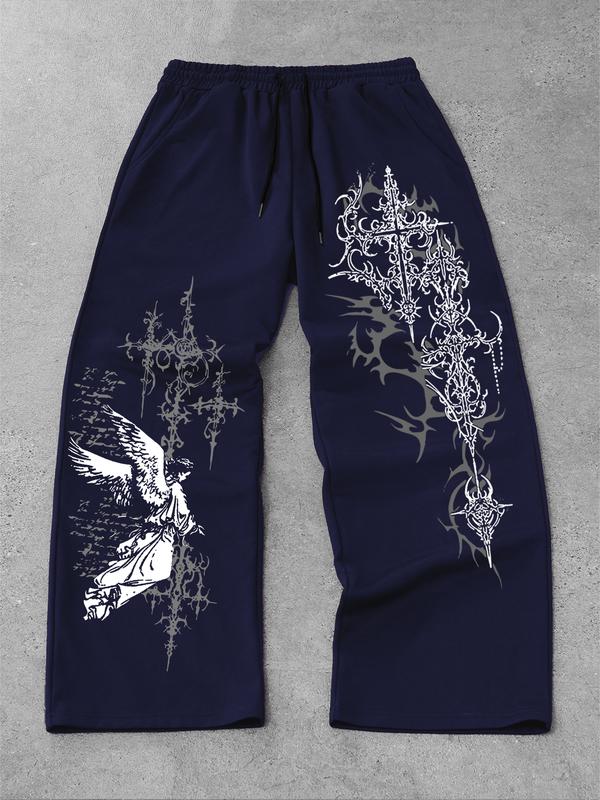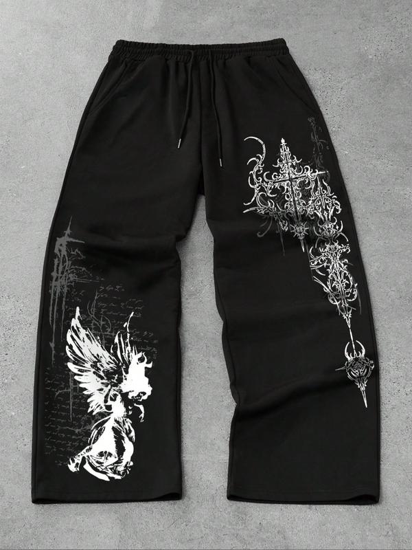 Men's Straight Leg Long Pants Gothic Print, Casual Fashion Bottoms, Comfortable and Stylish, Perfect for Daily Wear