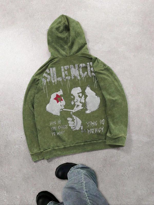 Men's Regular Fit Graphic Print Hoodie, Casual Comfy Hooded Sweatshirt for Daily Wear, Men's Clothes for Winter, Cotton