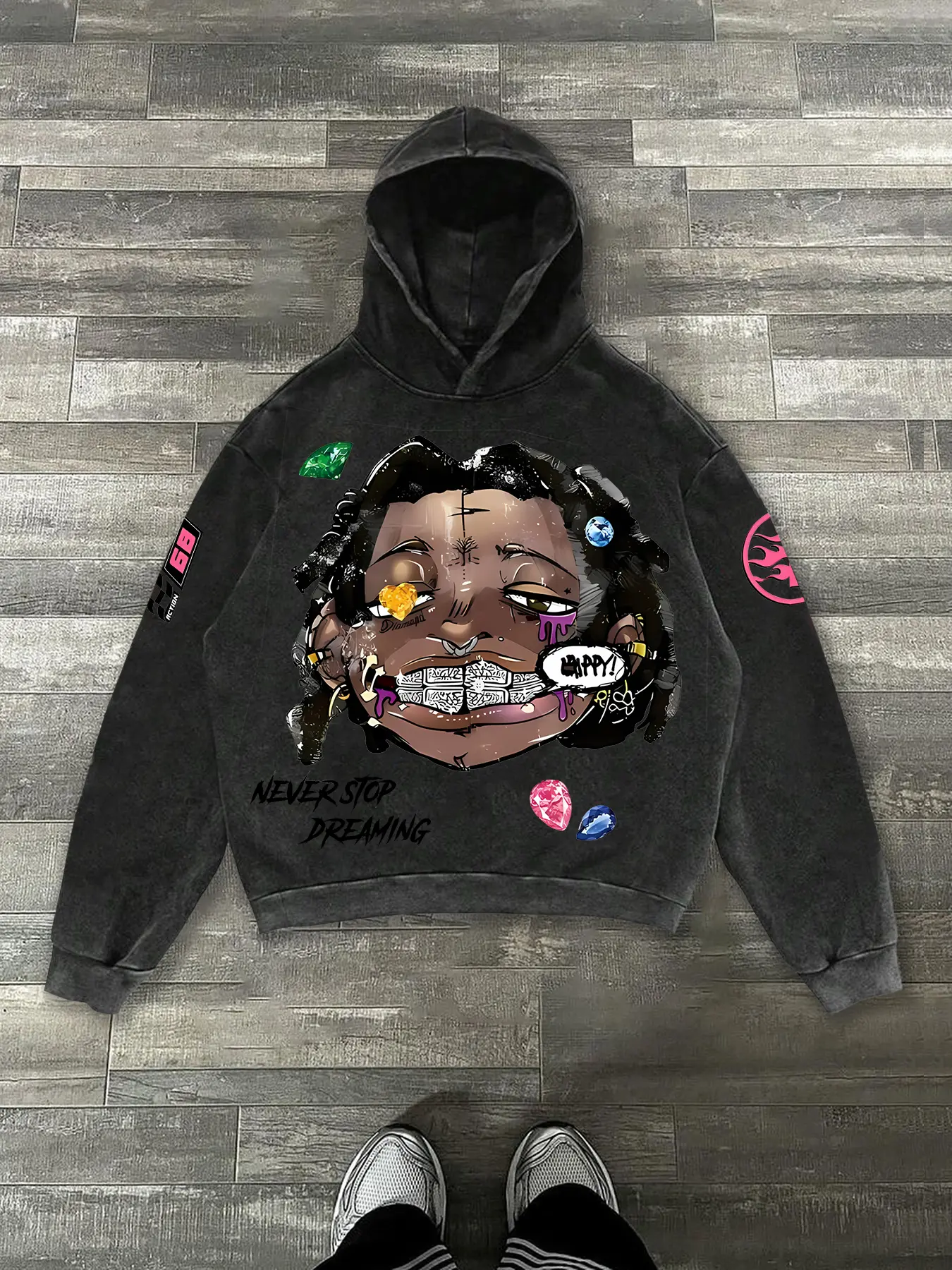 【Unique graphic element】: Features distinct printed character motifs that set it apart from standard hoodies, perfect for making a bold statement.