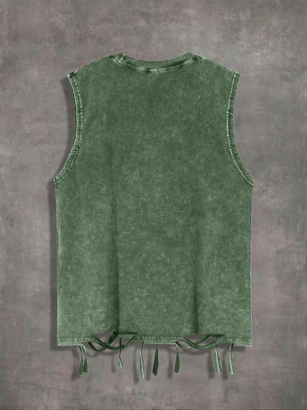 Men's Graphic Print Tank Top, Casual Street Sleeveless Round Neck Top for Summer, Men's Clothes for Daily Wear, Sleeveless Tank Tops, Cotton