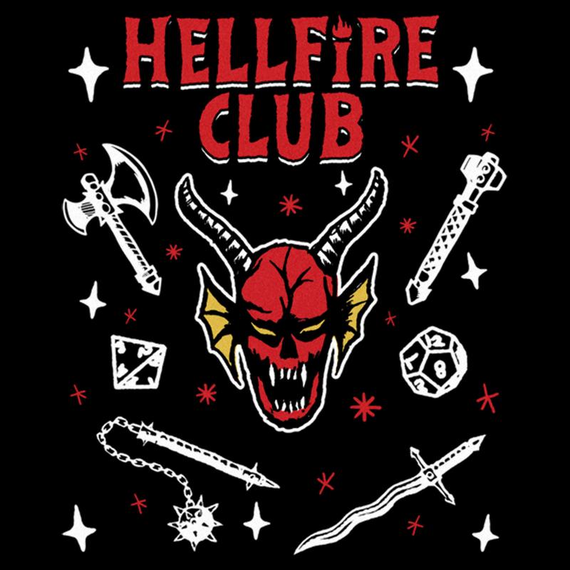 Turn your world upside down with this officially licensed Stranger Things Season 4 Men's Graphic T-Shirt! Your favorite 1980s-inspired Netflix television series is taking you back to Hawkins, Indiana to fight the evil creature, Vecna, who is terrorizing Max and other traumatized members of the town! Blast your favorite song and wear this awesome tee to fight the curse of Vecna today. This men's tee is inspired by the iconic Hellfire Club uniform and showcases dice, swords, and a horned demon across the front.