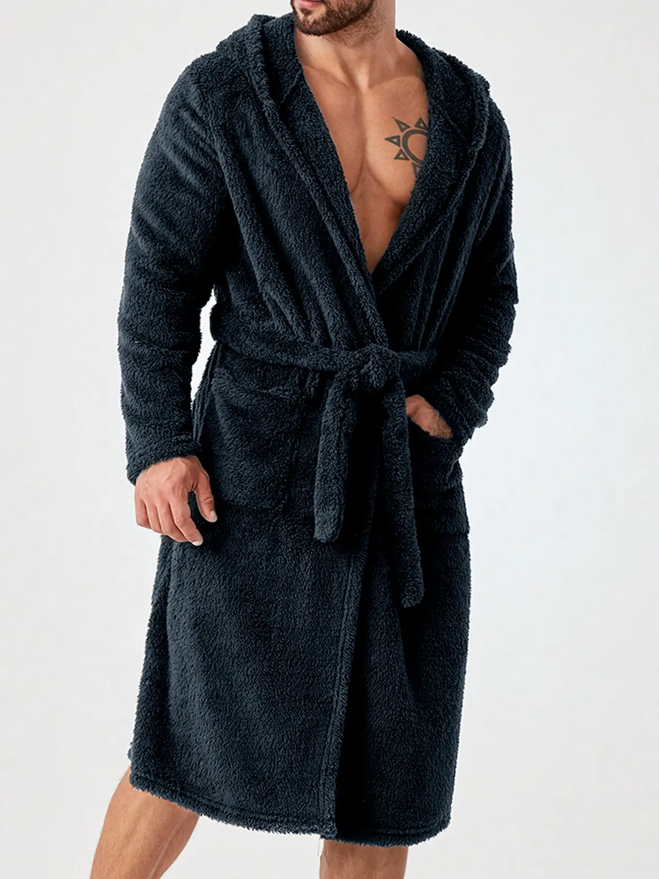 Men's Coral Fleece Hooded Bathrobe, Warm & Soft, Ideal for Ages 25-50, Perfect for Home Use Post-Bath & Relaxation #homewear #menhoodies #heatedrobe #hoodedcardigan #barefootdreamsrobe #warmhoodie #wintermensstyle #baggyhoodie #fallhoodies #mensweater