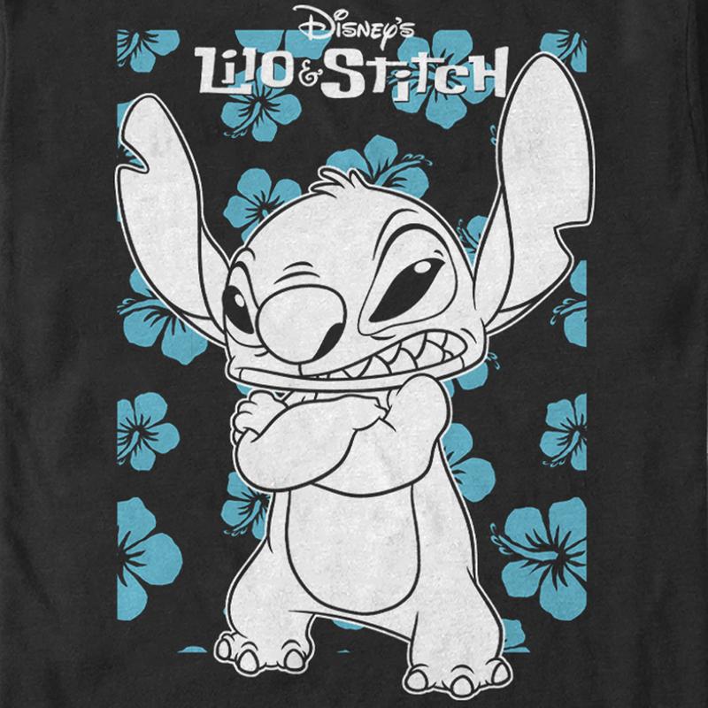Ohana means family, and family means no tee gets left behind! Find the perfect style with this officially licensed Men's Disney Lilo & Stitch Grumpy Blue Flowers Graphic T-Shirt! This fun design features Stitch crossing his arms with a grumpy look on his face with blue Hawaiian flowers all around him and the classic logo across the top. Celebrate a certain alien, otherwise known as Experiment 626 this year with new hilarious apparel from the movie!