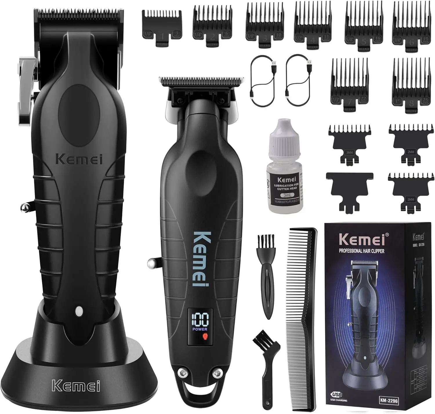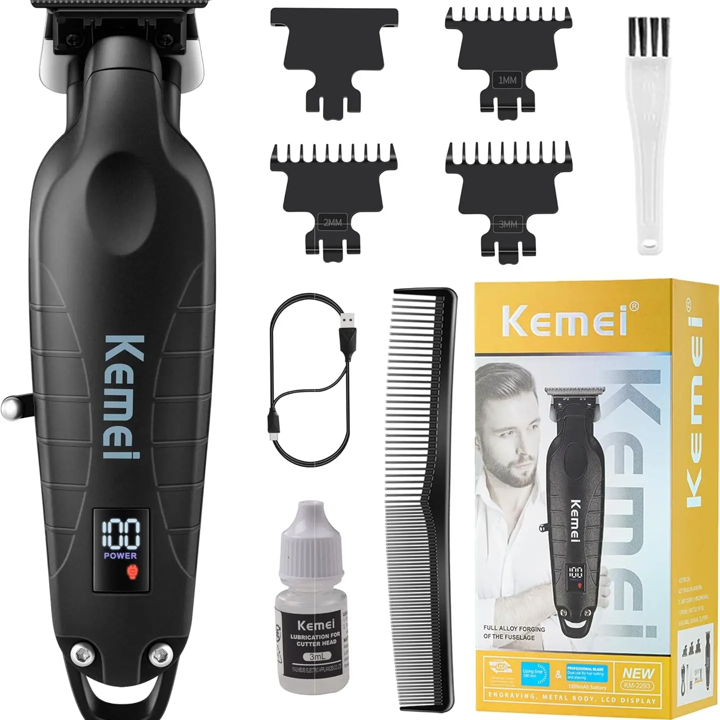 Large battery and super durability: With a 2500mAh battery, the clipper can be fully charged in just 3.5 hours, providing up to 210 minutes of continuous haircutting time. Similarly, the trimmer is powered by a 1200mAh battery that is fully charged in 3 hours for 180 minutes of powerful trimming. The KEMEI trimmer kit is ideal for both professional and home use and has reliable performance.
