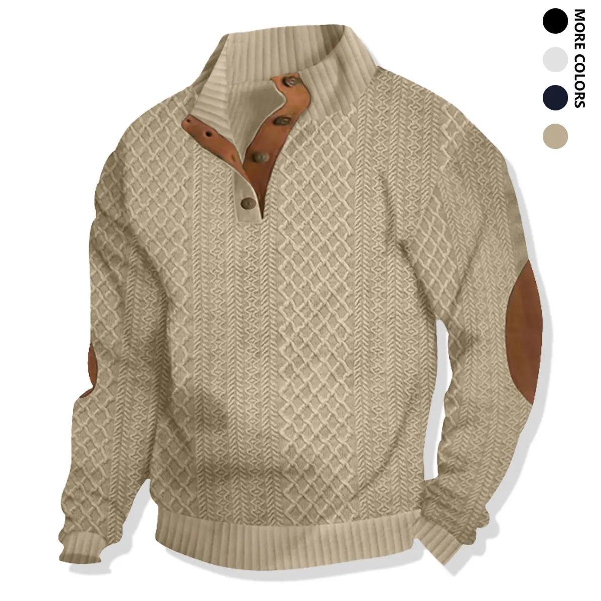 5. Men's Half Turtleneck Knit Sweater Jacket with Leather Elbow Patches Vintage Style Top Autumn Winter Daily Commuting/Weekend Casual Wear