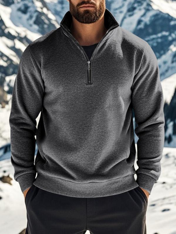Men's Half - Zip Pullover with Contrast Lining - Stand - Up Collar, Ribbed Trim, Athletic Fit. Designed for All - Weather Performance in Outdoor Settings, Suitable for Alpine Hikes, Urban Commutes, Winter Training & Athletic Sweatshirt