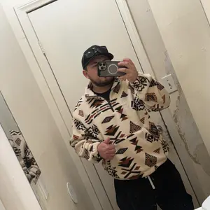 This sweater is very nice and well made. The material feels soft and comfortable, and it has a high-quality look overall. It does run a little large, so I would recommend sizing down if you prefer a more fitted look.