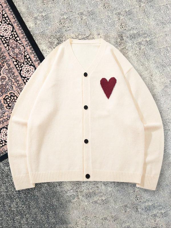Men's Heart Pattern Knit Cardigan, Casual Loose-Fitting Long Sleeve Sweater, Lightweight Layering Piece for Fall & Winter #catsweaters #valentinesdaysweater #affordablesweaters #cutesweaters #valentinessweater #casualsweater #mensknitwear #ediktedoversizedsweater #cardiganhoodie #mensweater