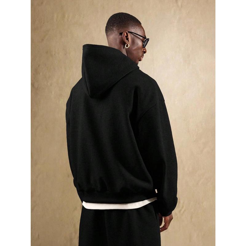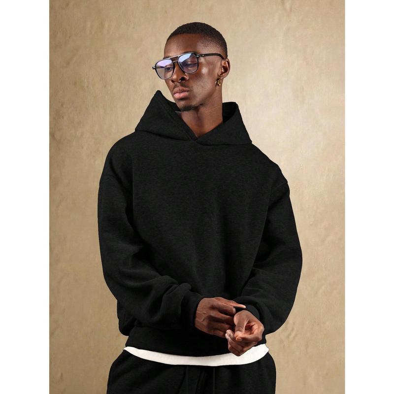 Men' Heavyweight Hoodie - Oversized Pullover Sweatshirt, Black Hooded Sweatshirt for Fall/Winter, Everyday Casual Streetwear Essential Cold Weather Apparel, Sweater Hoodie
