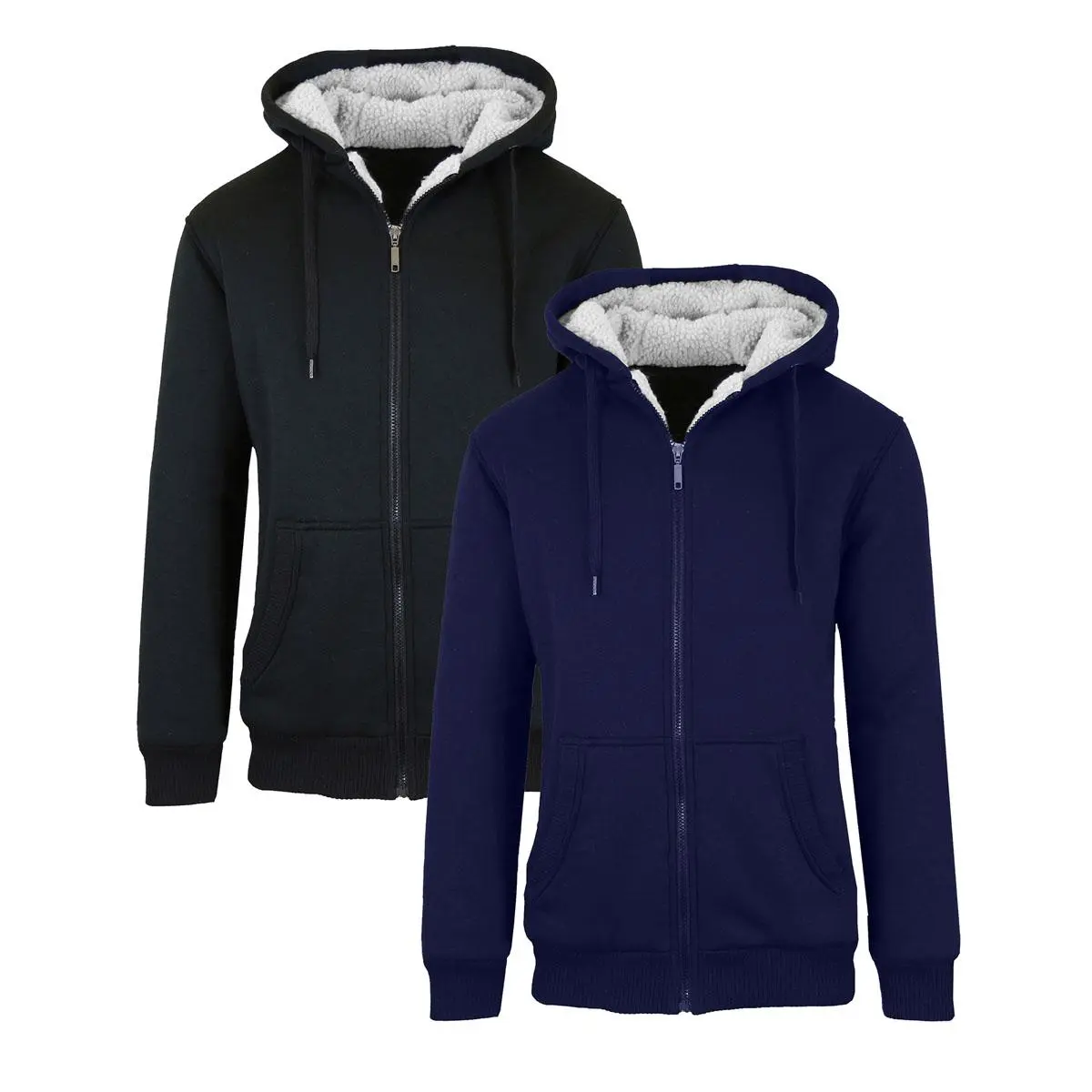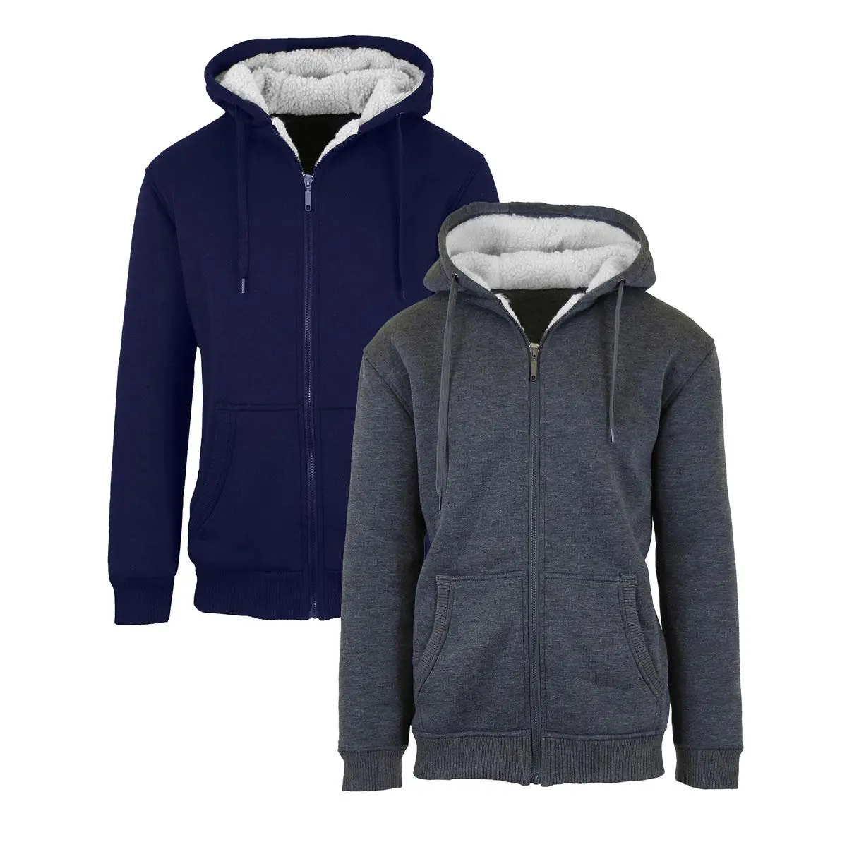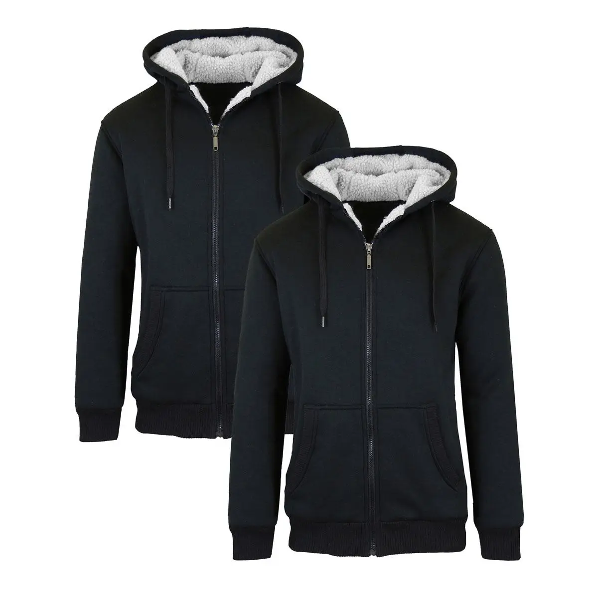 Stay warm and stylish with this 2-Pack of Men's Heavyweight Sherpa Fleece-Lined Zip Sweater Hoodies