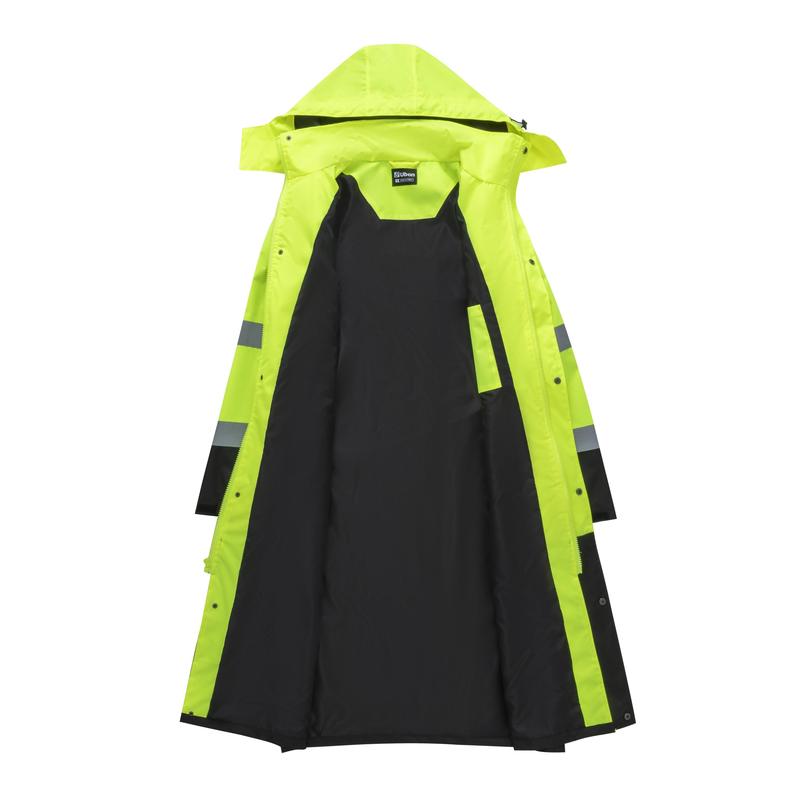 The Ubon High Visibility Rain Coat, is the leading solution for professionals working in demanding environments. This raincoat ensuring maximum visibility even in adverse weather conditions. Crafted from 300D Oxford polyester, this raincoat offers durability and weatherproofing. The reflective tape enhances visibility, providing added safety. The removable hood allows customized protection against the elements.