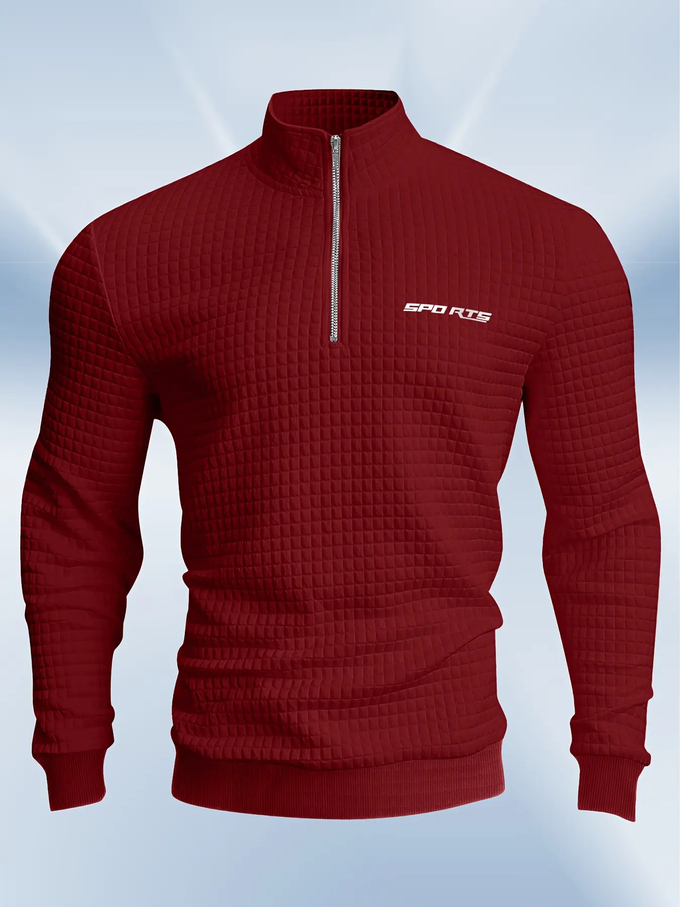 Men'S High-Neck Sweatshirt with Half Zipper for Sports, Featuring a Small Checkered Pattern, Suitable for Fitness And Running, with Long Sleeves And Ribbed Cuffs. quarter zip tiktok shop gifts for him vacation outfits