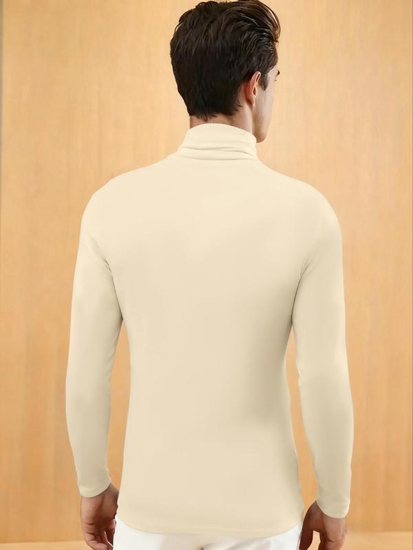 5. Men's High Neck Warm Long Sleeve T-Shirt + Faux Two-Piece Pants Set, Casual Fashion, Fall & Winter Wear, Comfortable and Stylish