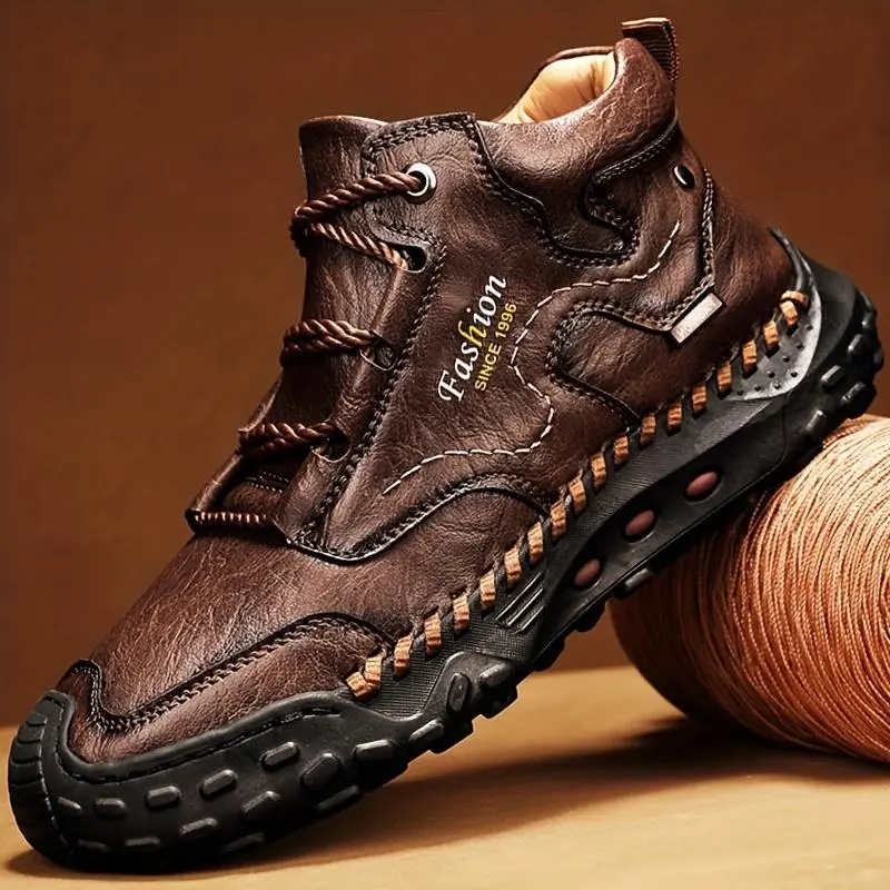 Men's High Top Boots - Durable Lace-Up, All Season Microfiber Synthetic Footwear, Rubber Sole, Great for Hiking and Outdoor Activities, Hiking Boots #LeatherBoots#ClassicStyle#TimelessFashion#BootsOfTheDay#EverydayStyle#MensFootwear#CasualChic#ComfortAndStyle#StreetStyle#FYPStyle#FashionInspo#SmartCasual#ModernManStyle#ShoeGoals#LeatherLove
