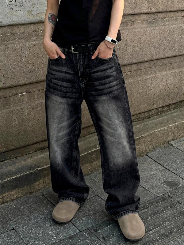 Men's Y2K Hip-Hop Style Black and Gray Gradient Stone Washed Jeans | Loose Baggy Street Style Jeans Retro Distressed Urban Street Casual Daily Wear