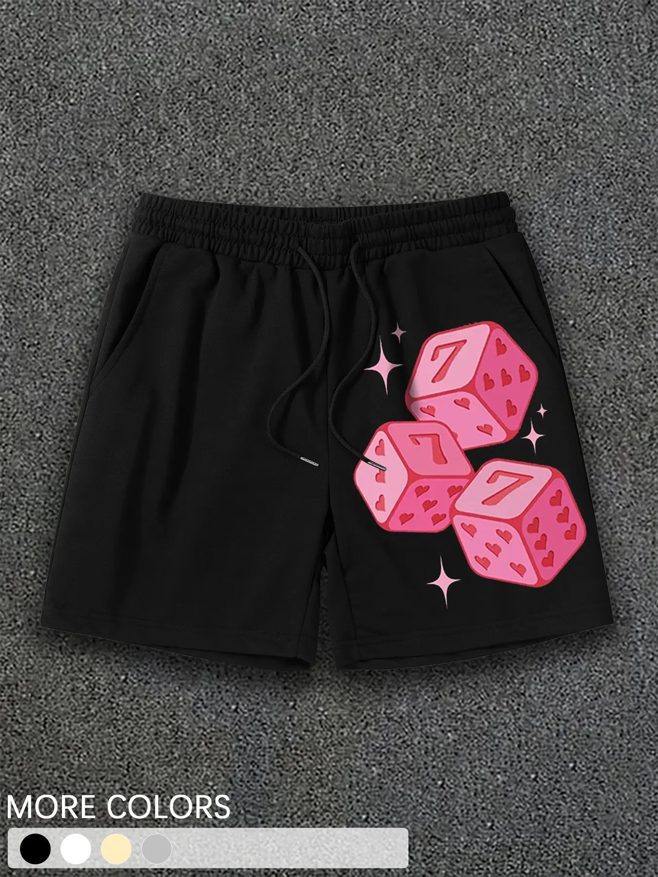 5. Men's Hip Hop Vintage Sweat Shorts, Pink Lucky Dice Pattern & Comfortable Loose Fit for Street Fashion and Music Festivals