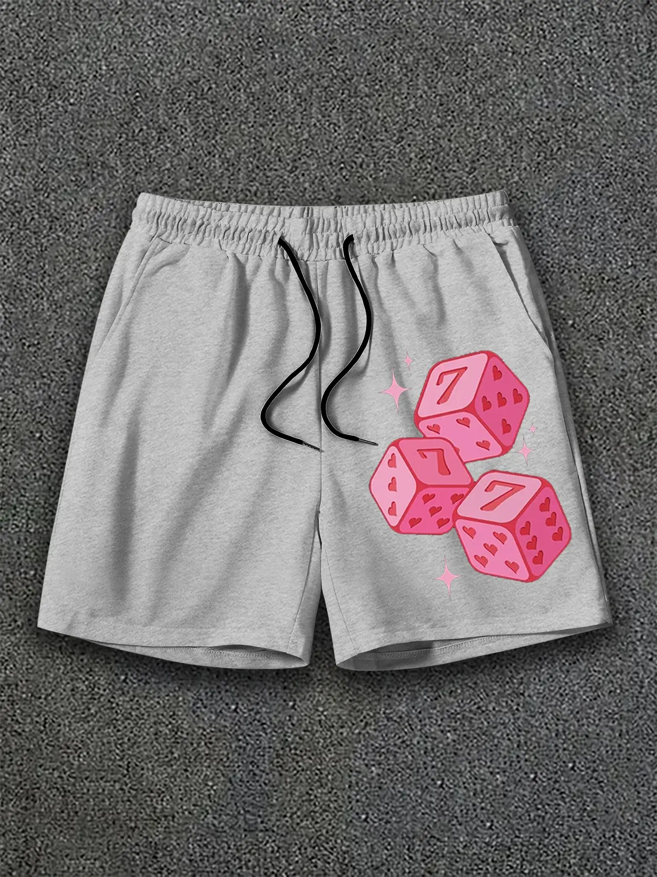 Men's Hip Hop Vintage Sweat Shorts, Pink Lucky Dice Pattern & Comfortable Loose Fit for Street Fashion and Music Festivals