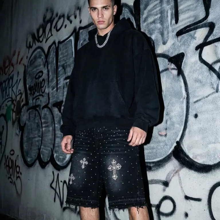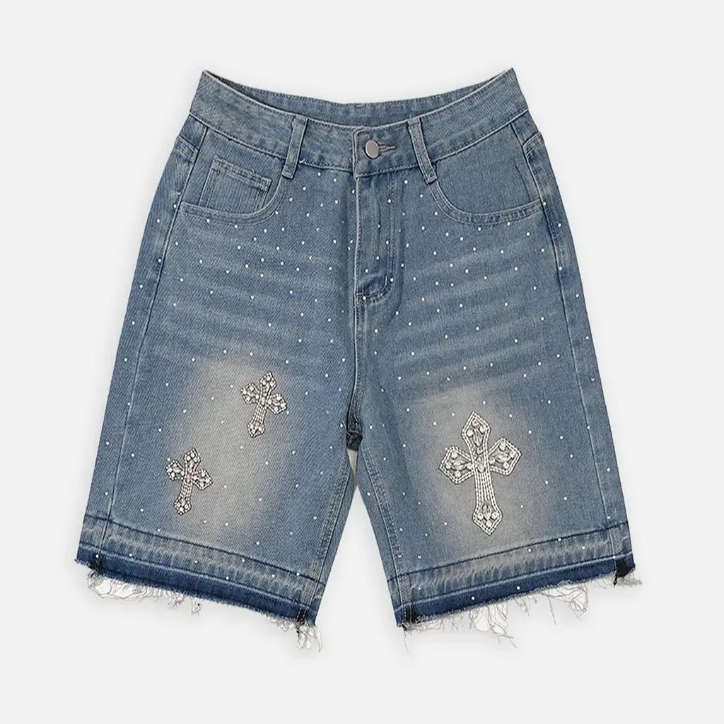Sopula Studio Men's Hiphop Cross Hot Diamond Jorts Denim Shorts SpringStatements