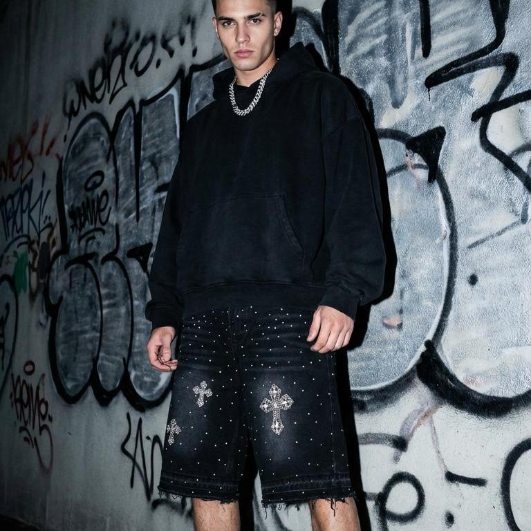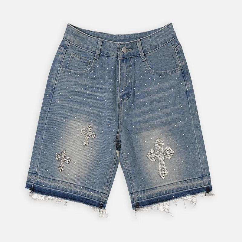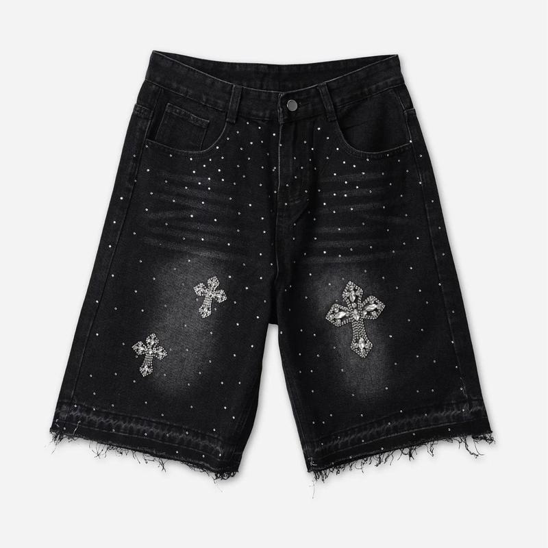 Sopula Studio Men's Hiphop Cross Hot Diamond Jorts Denim Shorts