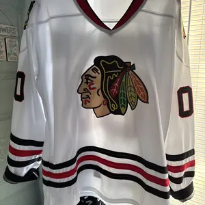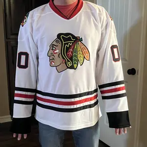 Arrived really fast, I am just floored at this beautifully stitched real hockey jersey and the price I payed, pay attention to the size measurements I am usually a large and the medium fit perfect and loose, best buy of the year!!!