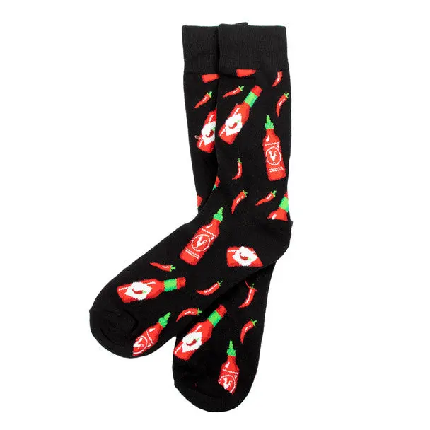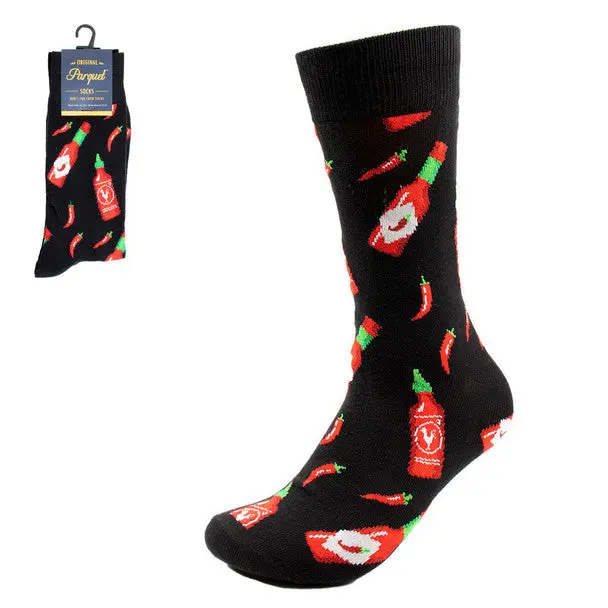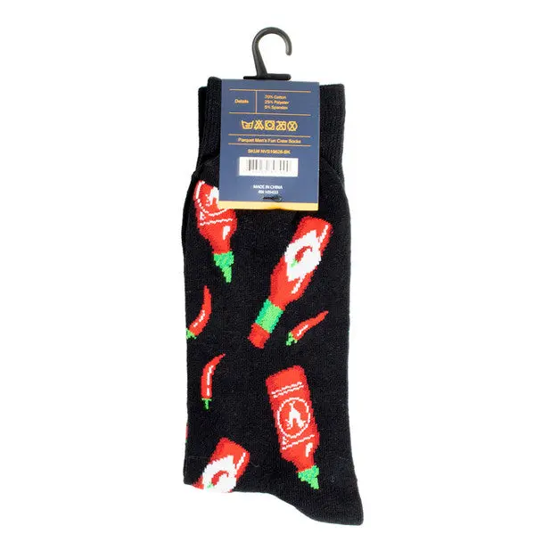 Parquet Men’s Hot Sauce & Chili Pepper Novelty Crew Socks – Black