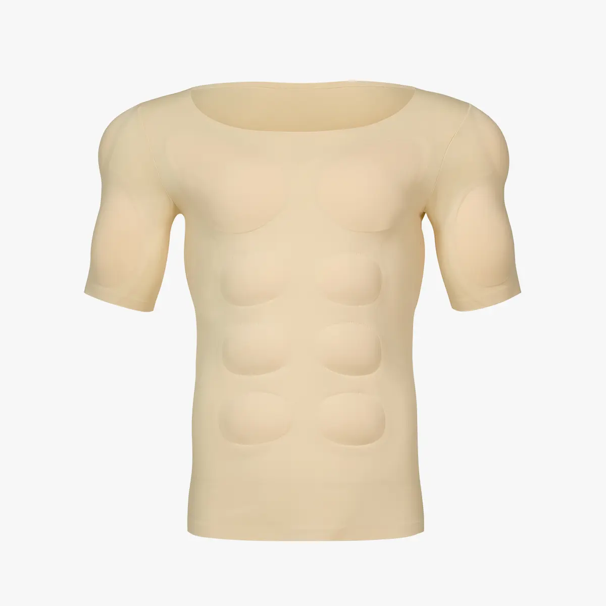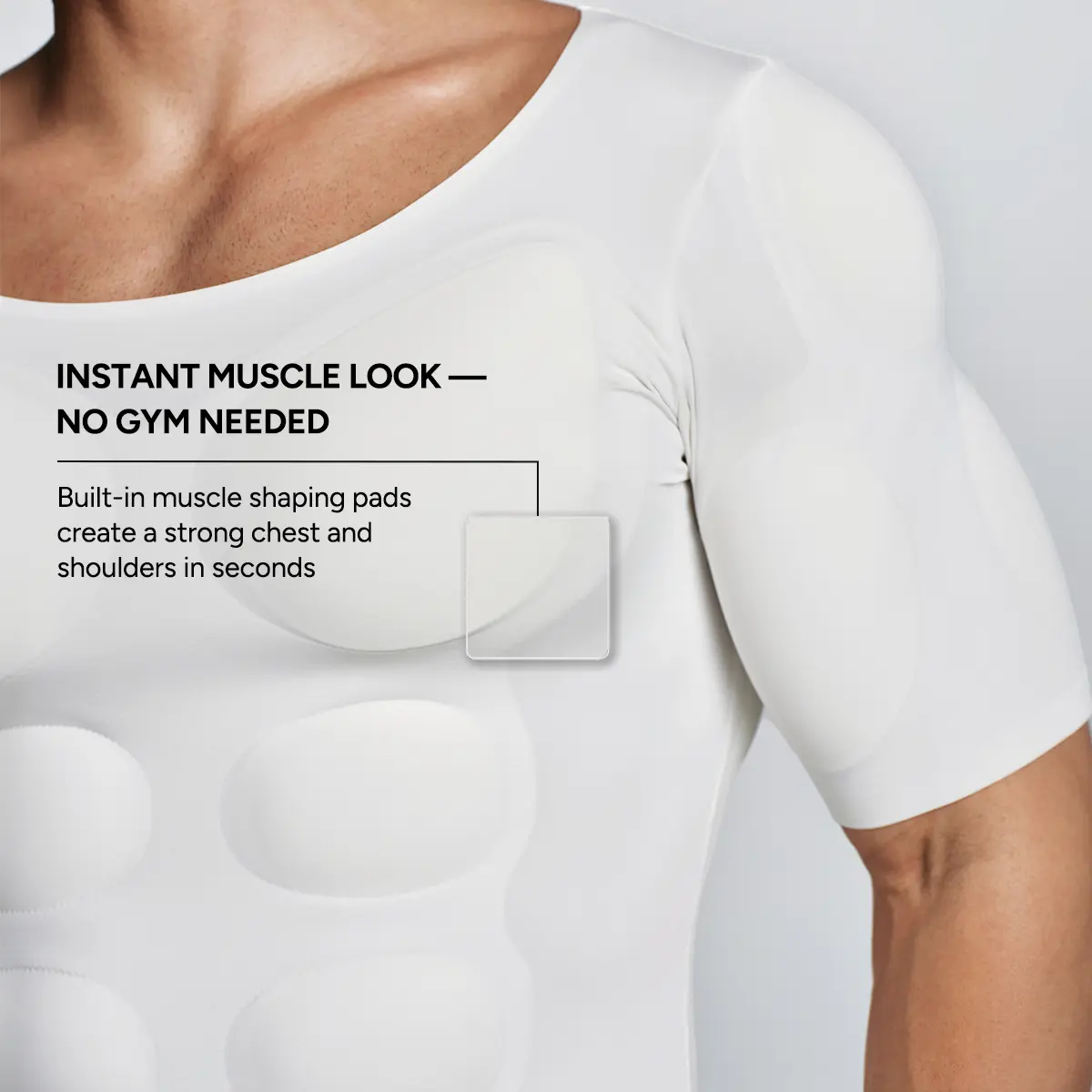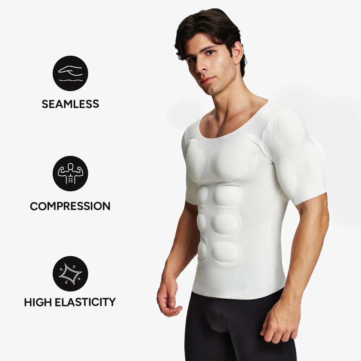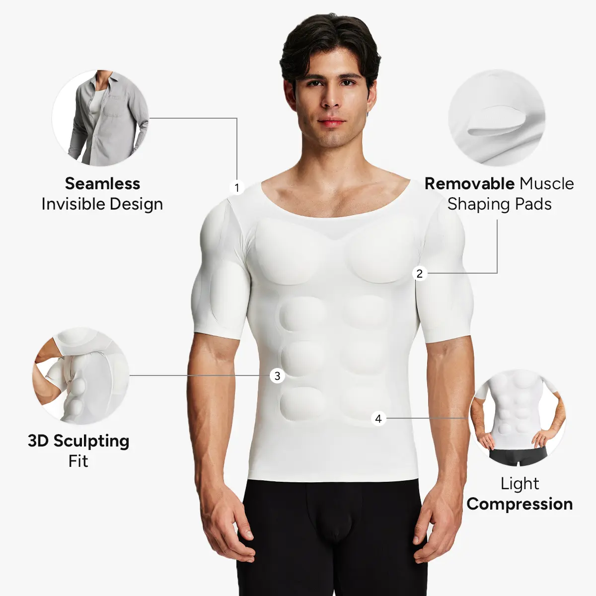 【Nebility】 Men’s Invisible Seamless Muscle-Enhancing T-Shirt with Removable Muscle Pads and Light Compression Function, Suitable for Everyday Wear, Cosplay, and Special Occasions SpringStatements