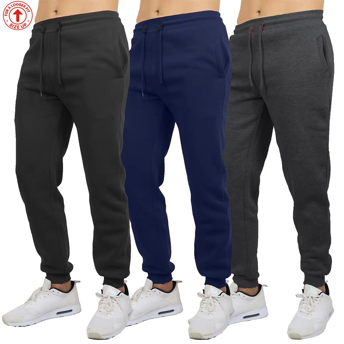 I’m very disappointed in my order … all 3 pants fit different and 2 of the 3 are to small . I ordered a size up thinking most joggers are a little tight . That didn’t help . The material feels pretty good but it might sink after I put it in the dryer also all 3 have different tags on the inside