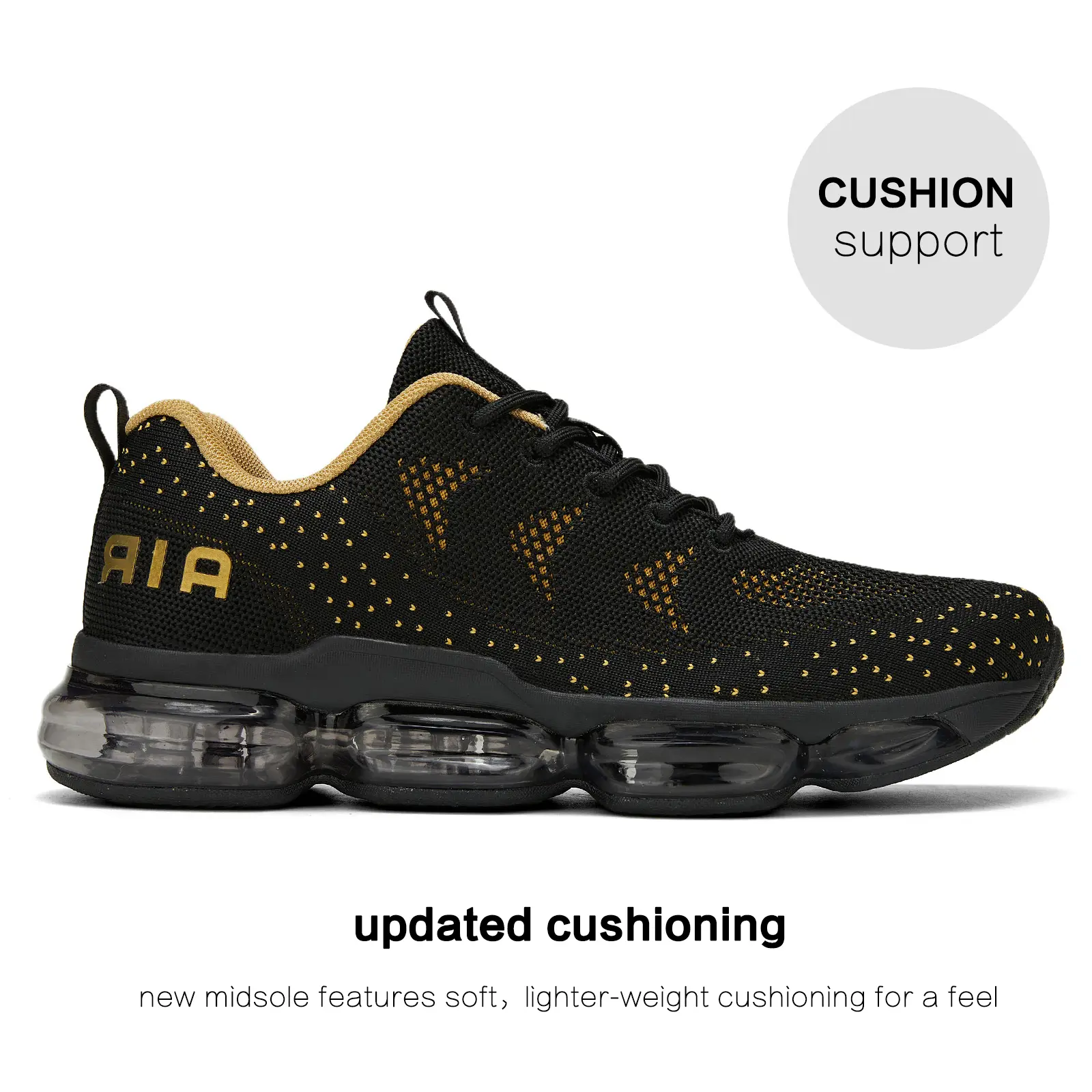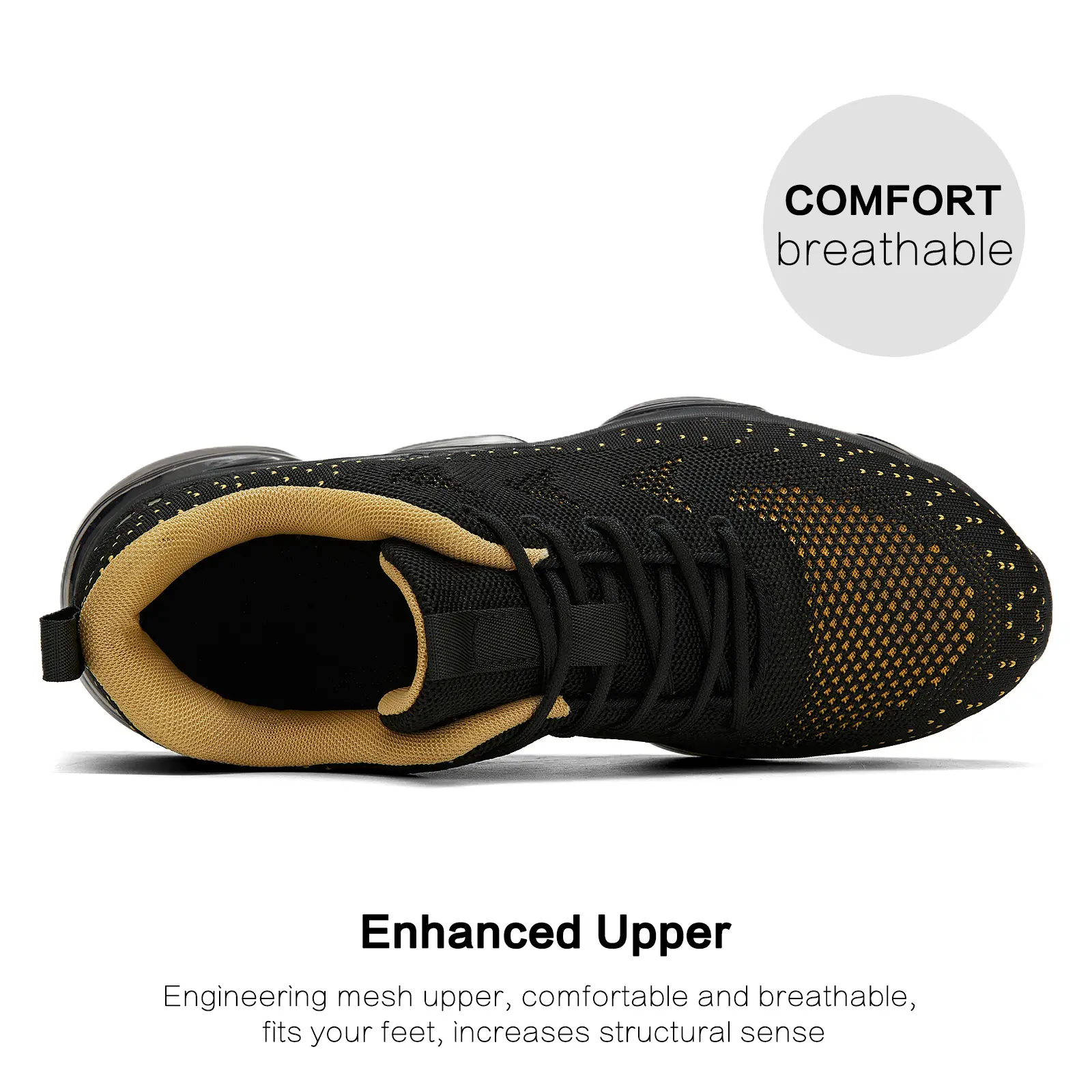 Men's Air Cushion Running Shoes Walking Jogging Fitness Gym Fashion Sneakers Lace Up Casual Comfortable Work Tennis Sport Athletic Trainers Black/Red