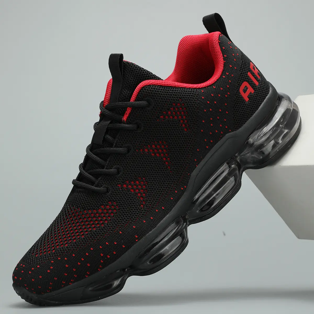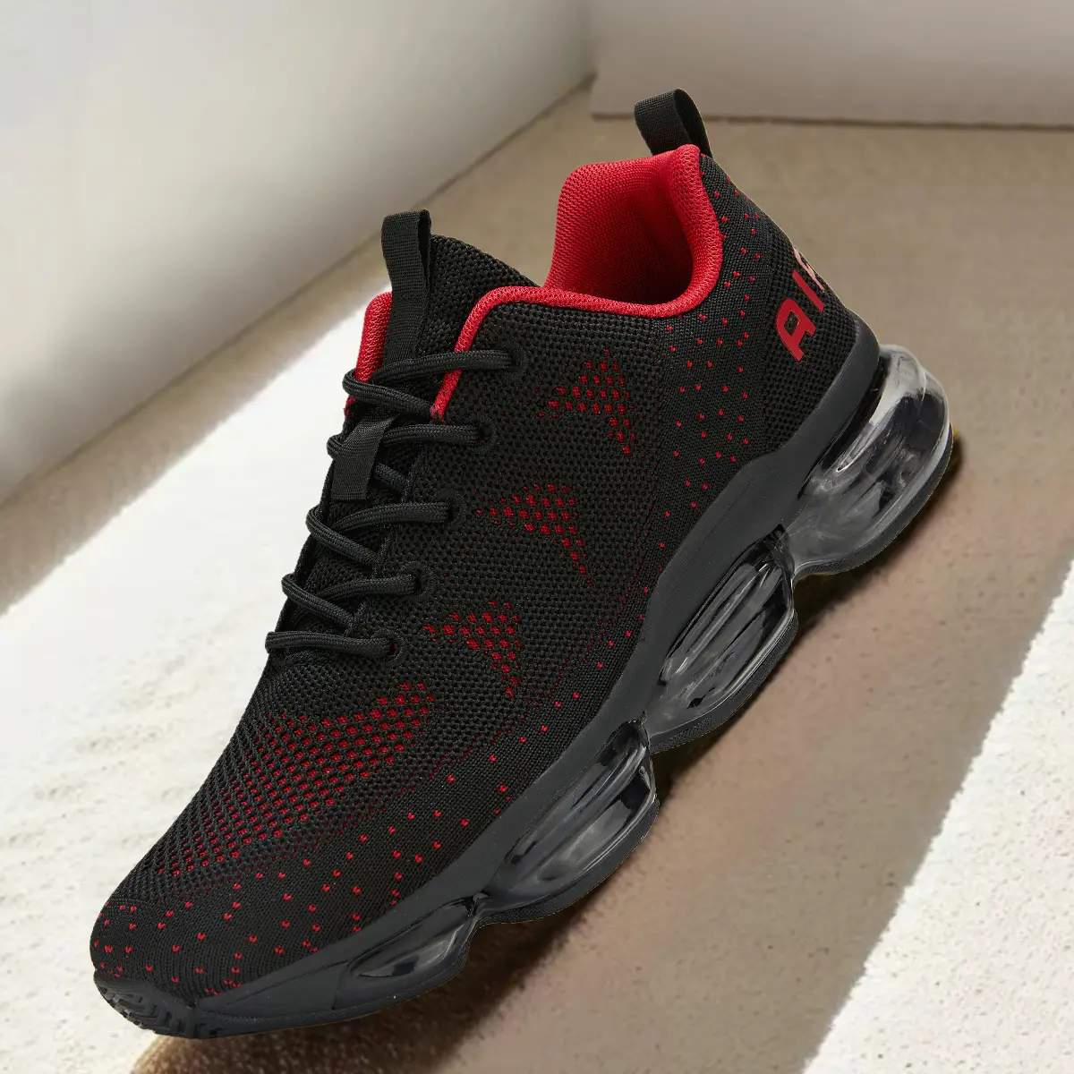 Men's Air Cushion Running Shoes Walking Jogging Fitness Gym Fashion Sneakers Lace Up Casual Comfortable Work Tennis Sport Athletic Trainers Black/Red @K1-REALRUN  #menshoes #runningshoes #sneakers #sportsfashion #viral
