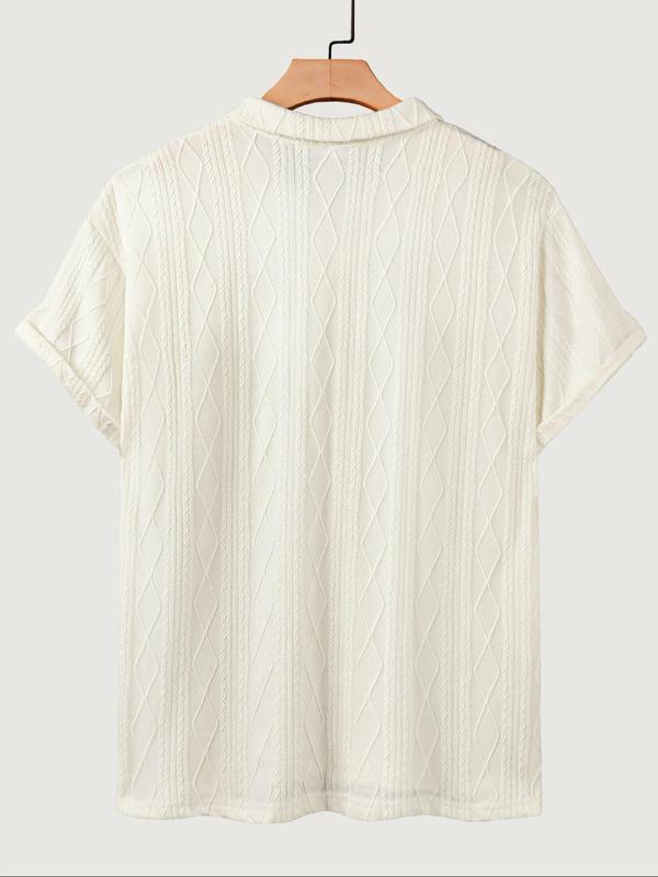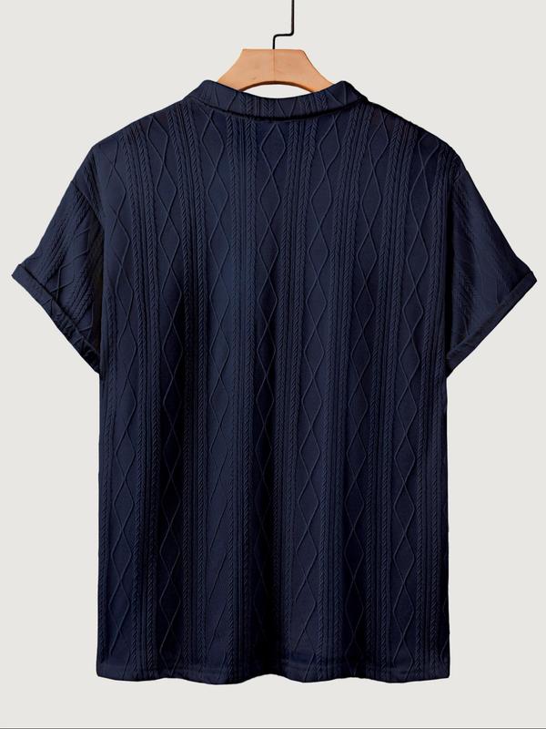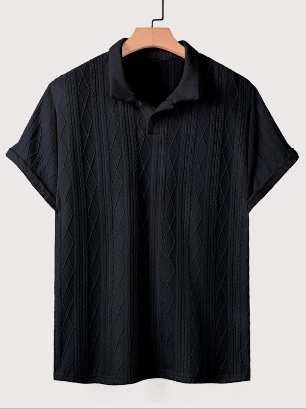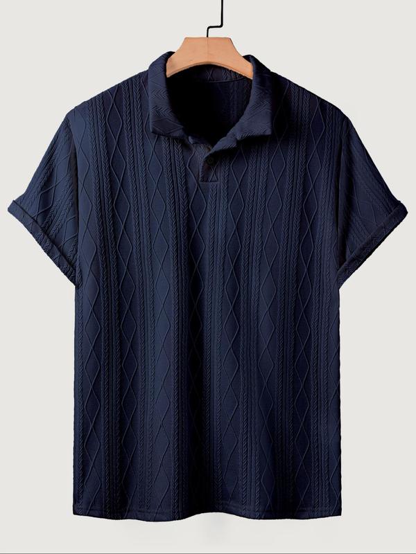 Men's Textured Design Knit Polo Shirt, Casual Summer Fitted Plain Pattern Top, Moderate Fabric Men's Clothing for Daily Wear #mensstyle #menswear #menclothes #fittedshirt #menwear #mensstylehack #mensfashionusa #menswearstyle #menssweatshirt #slimmingshirts