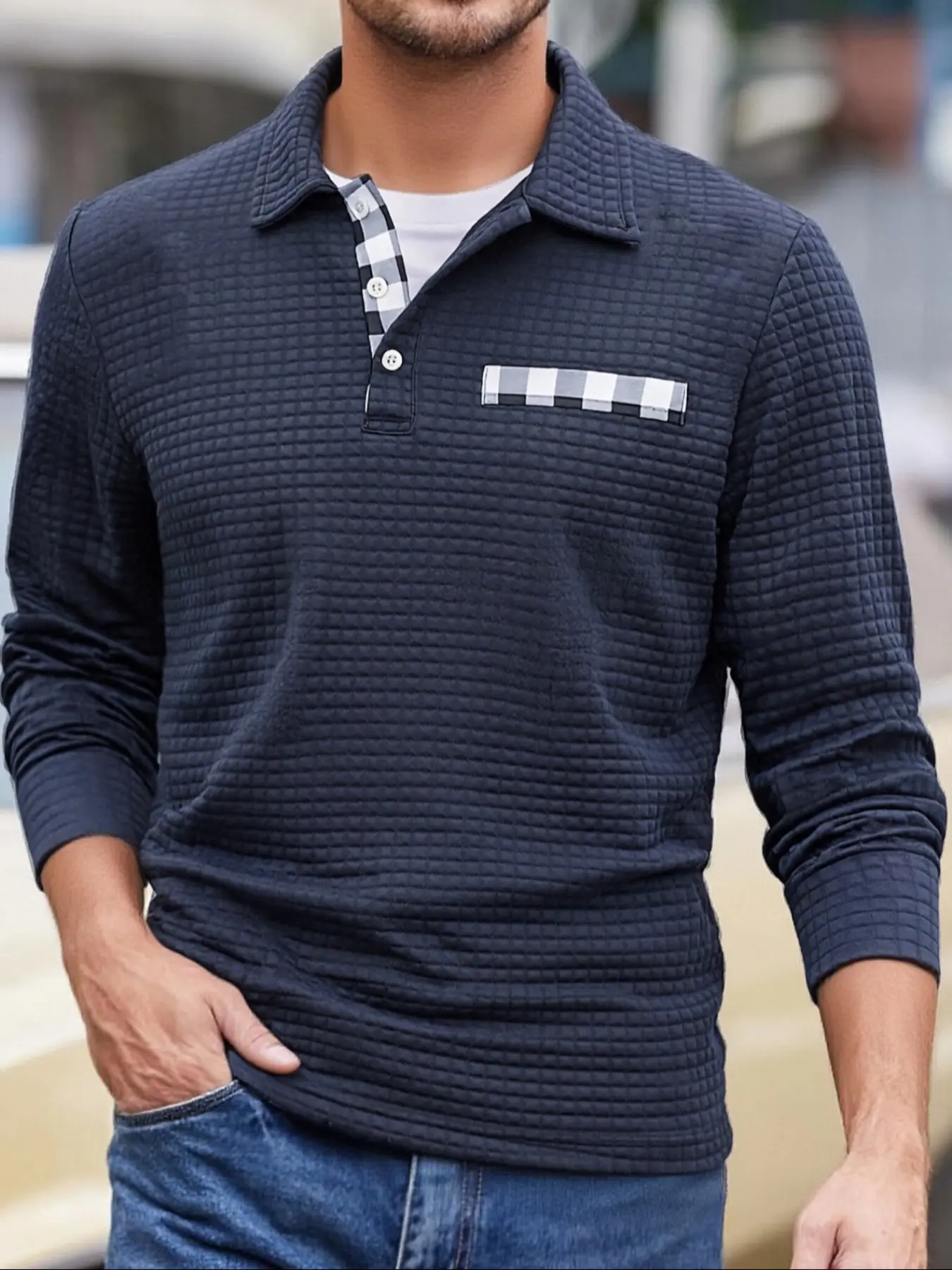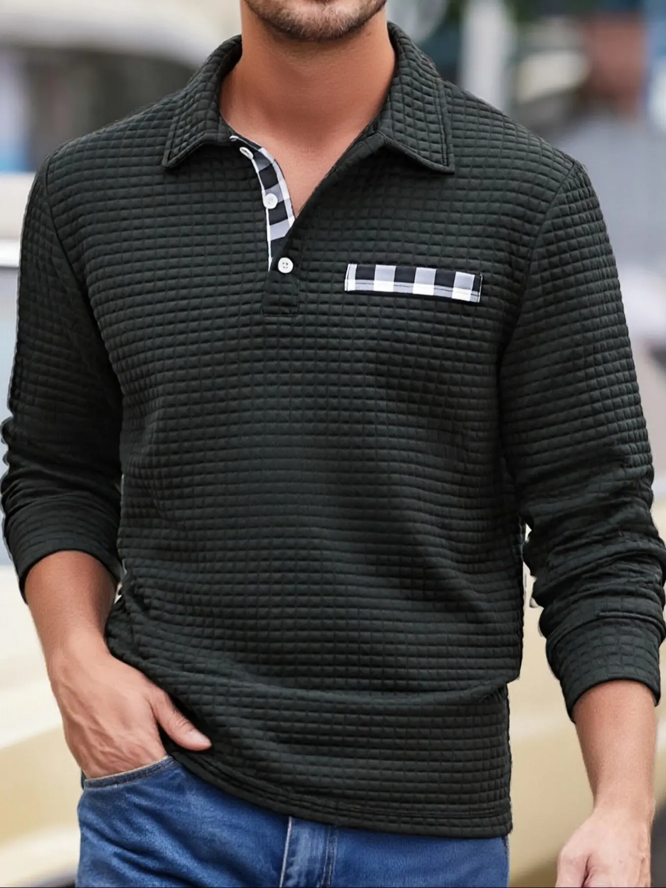 【Plaid pattern】: Adorned with a plaid pattern that adds visual interest, distinguishing it from basic long-sleeve polos in your wardrobe.