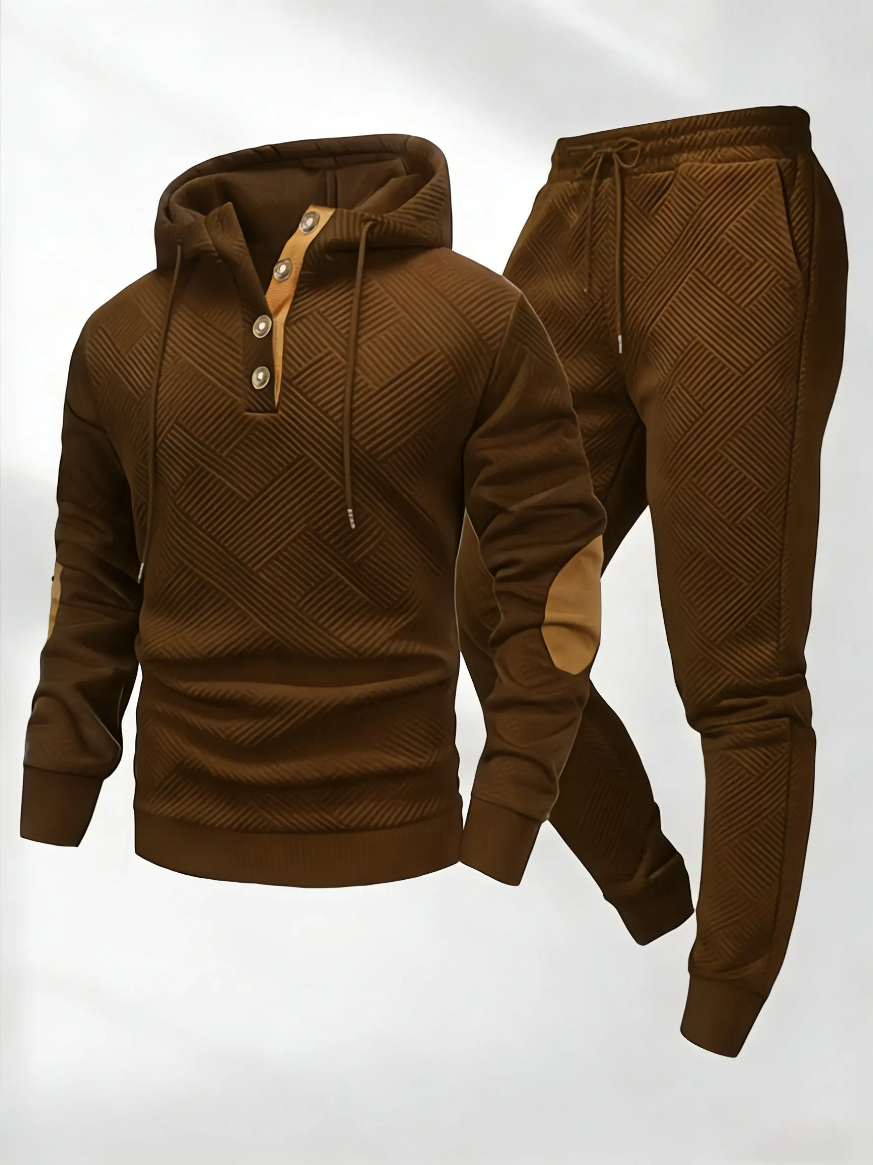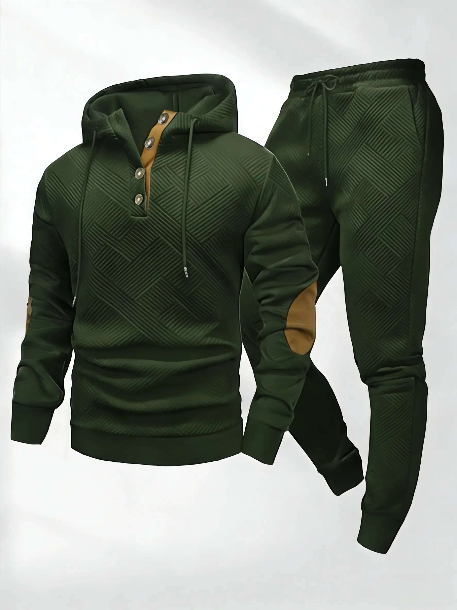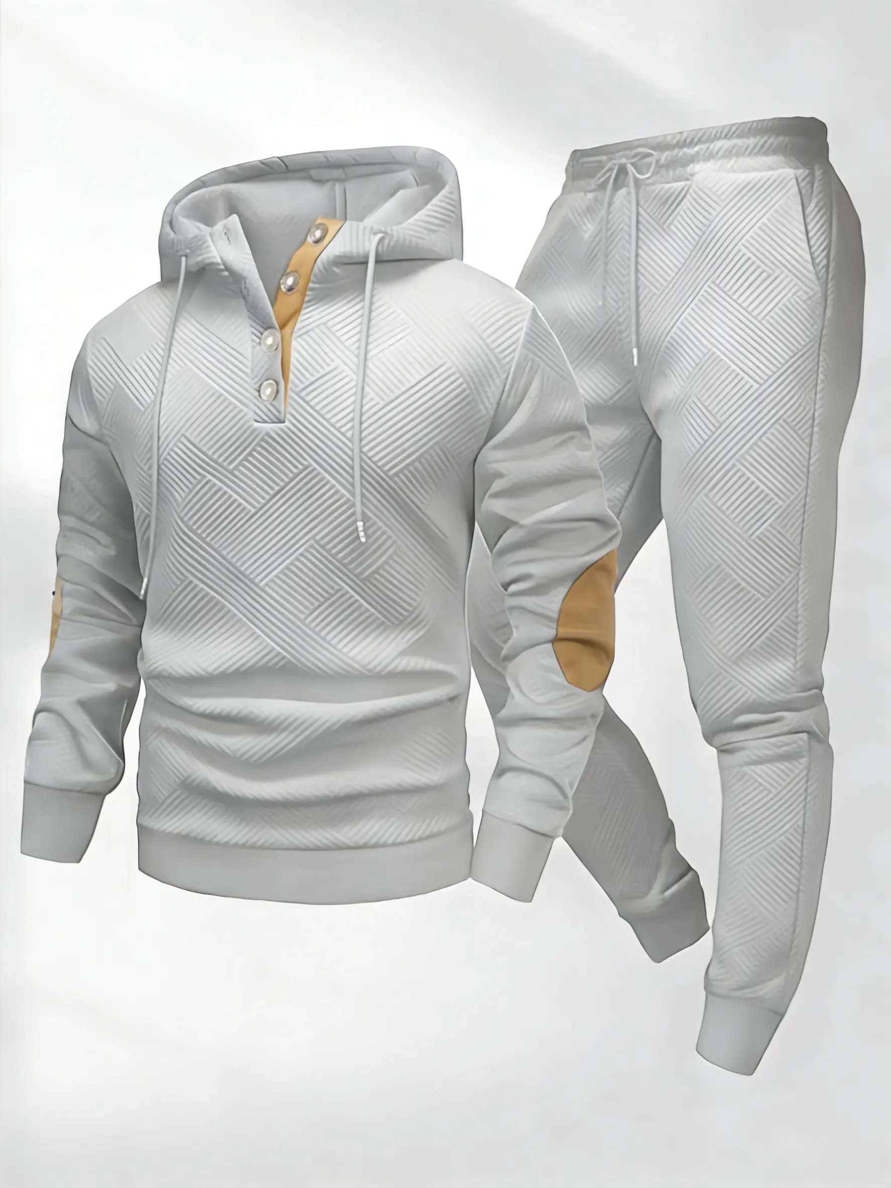 Men's Two-Piece Casual Fashion Set Knitted Jacquard Sports Hoodie with Pants