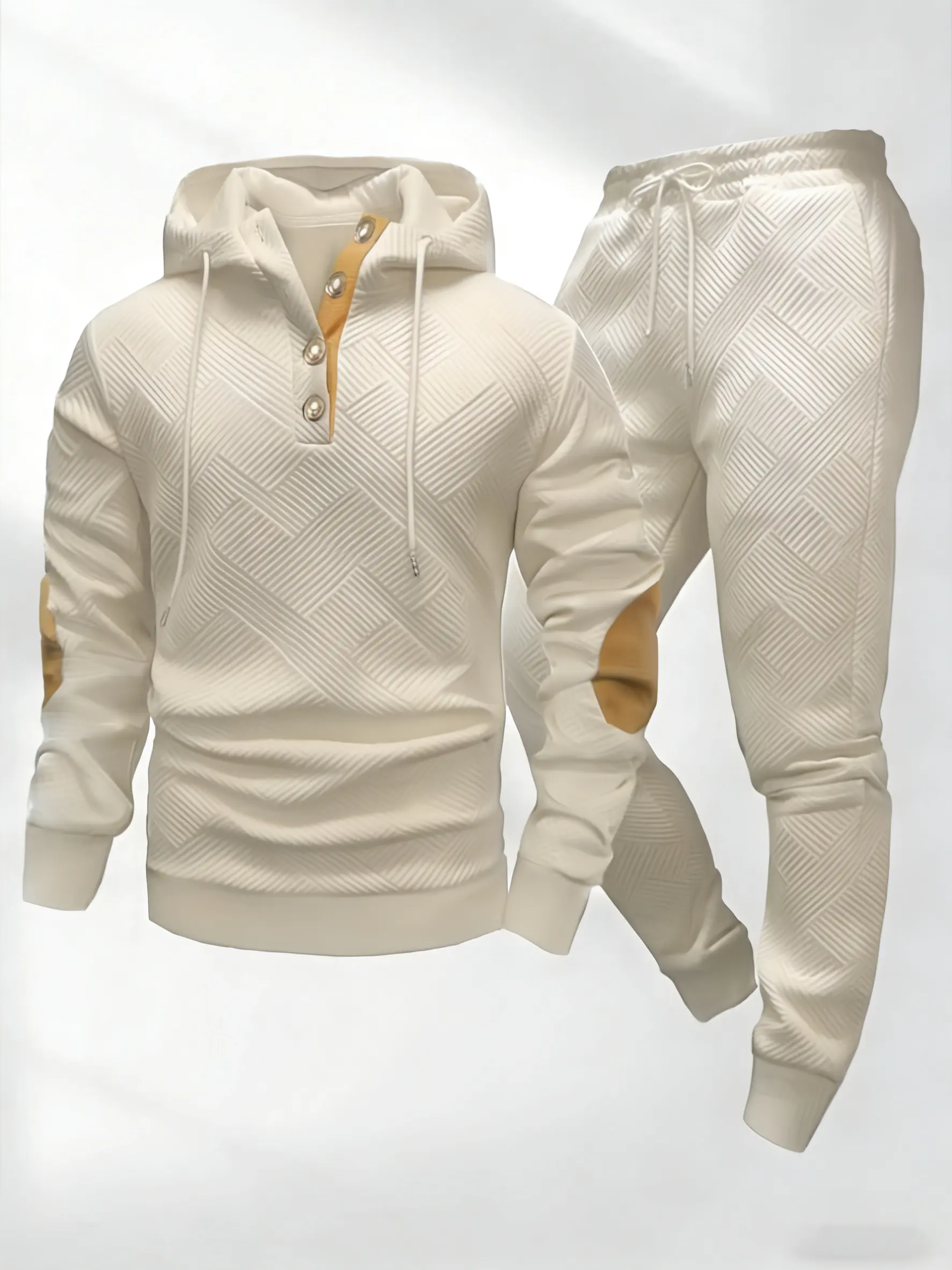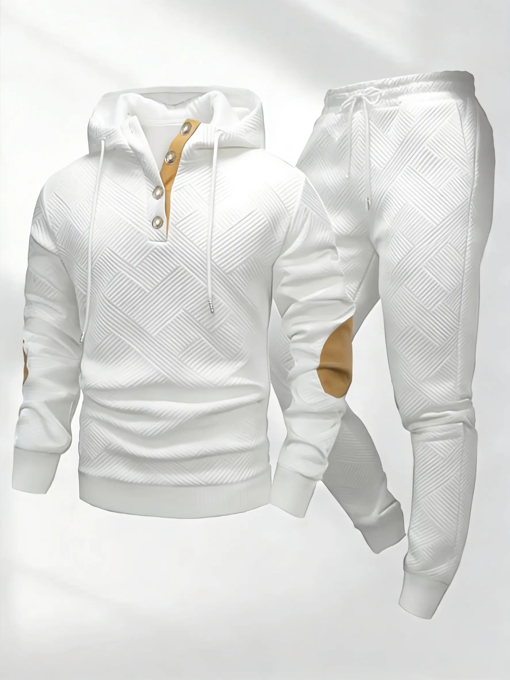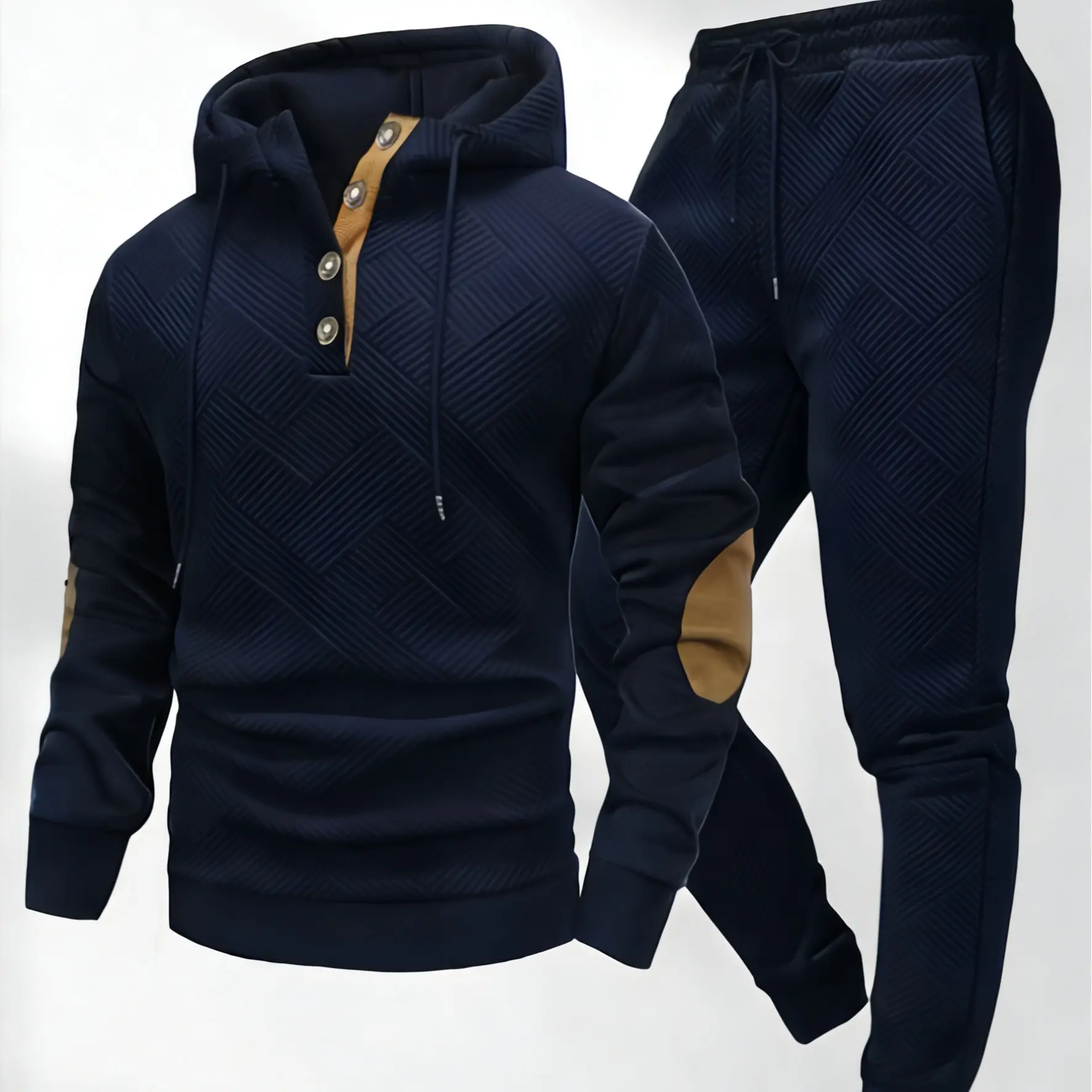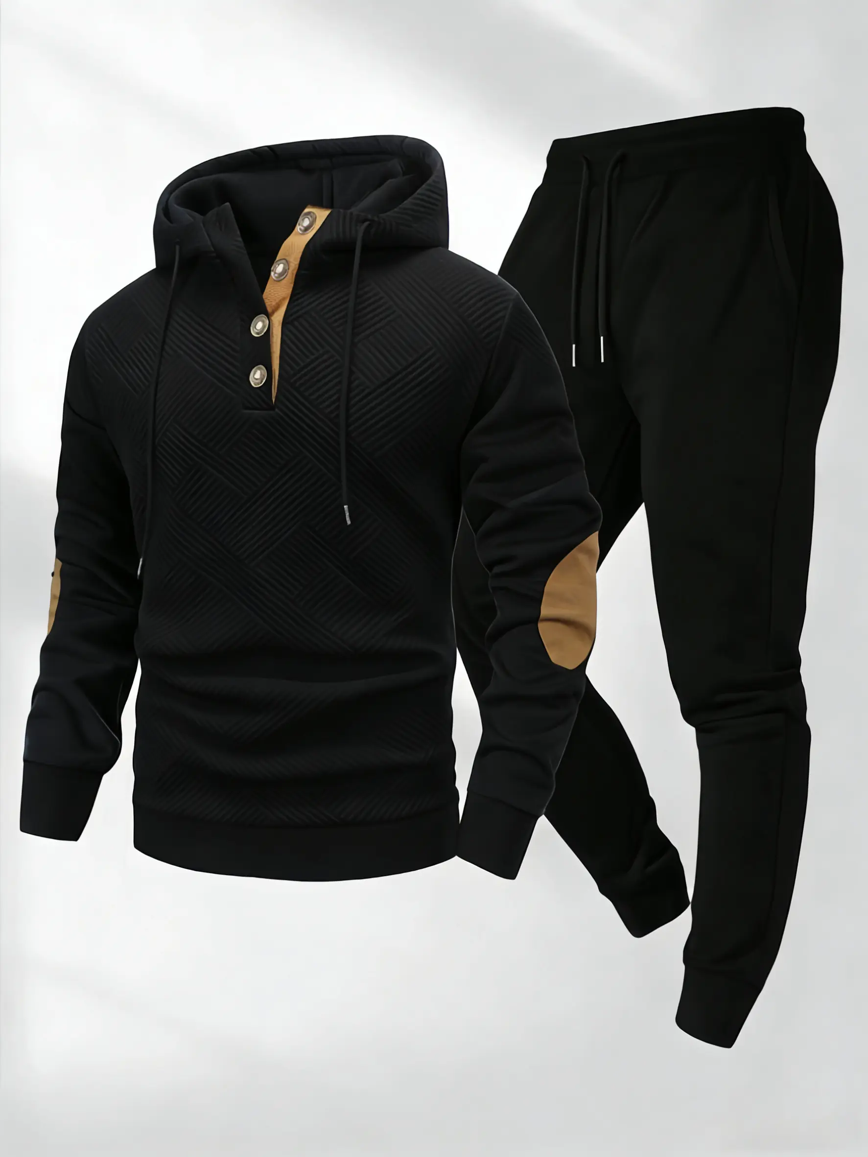Men's Two-Piece Casual Fashion Set Knitted Jacquard Sports Hoodie with Pants